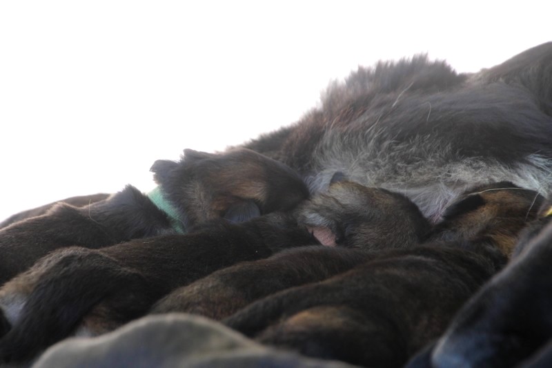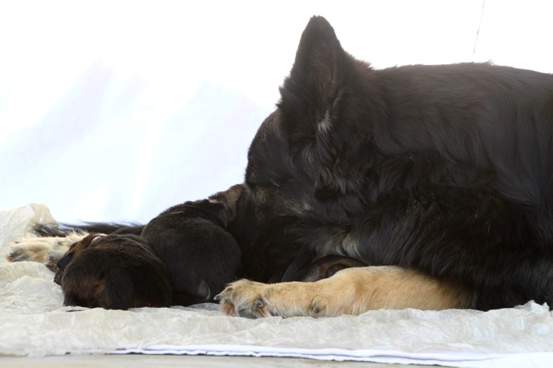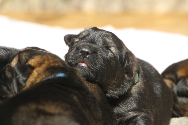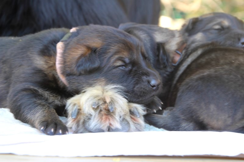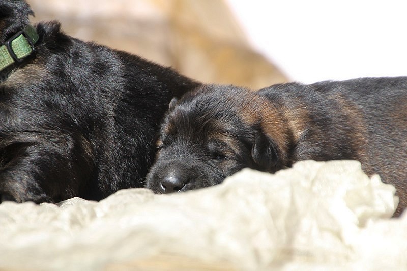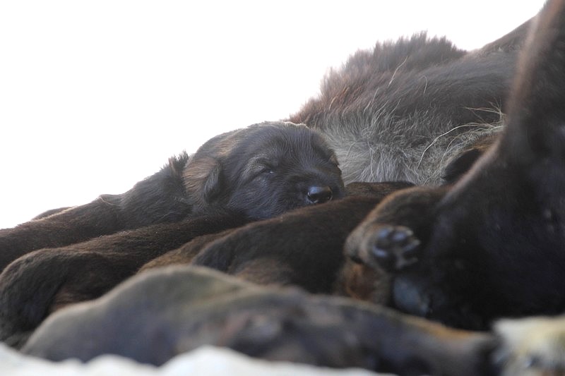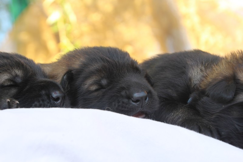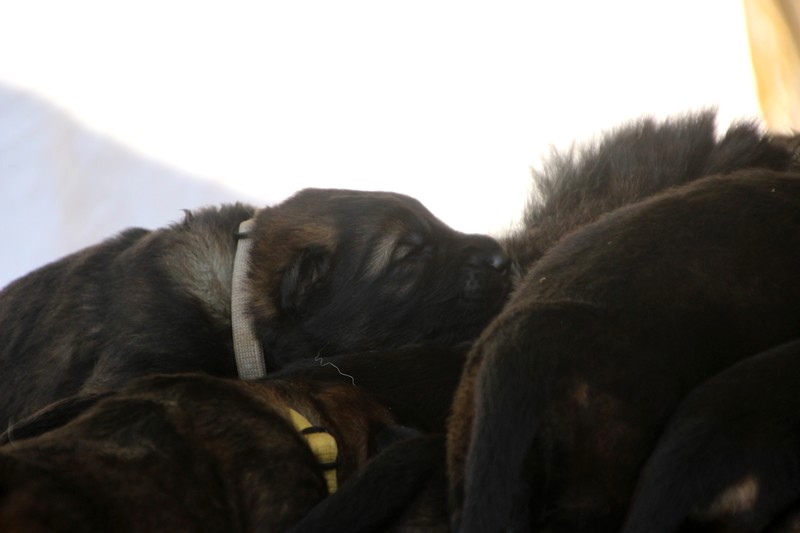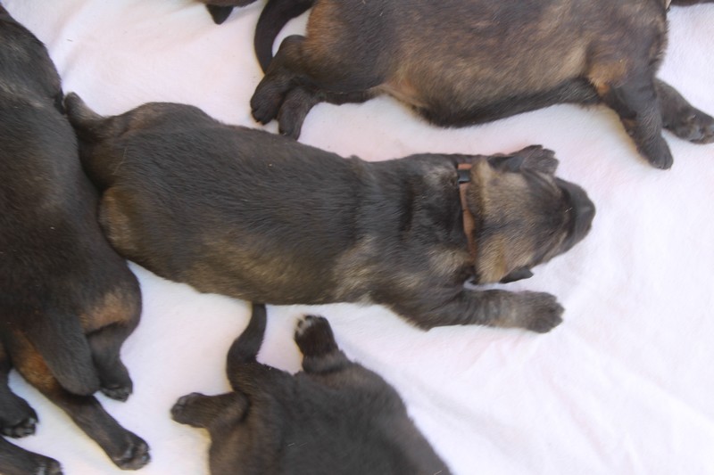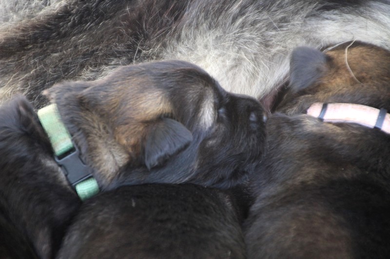 Malgré cela, la vie continu et la tristesse ne doit pas faire d’ombre aux moments de joies qu’apportent toute cette joyeuse troupe. Si pour le moment ils ne font que dormir, manger et ressemblent à un troupeau de phoques échoués sur une plage, ces petites boules d’amour ont ouvert les yeux et leur courbe de poids est excellente. Maman sioux est aux petits soins pour eux, tata Ice a commencé à pointer le bout de son nez dans la pièce pour venir voir ses futurs protégés et oui ici nous savons tous, que Ice va encore veiller sur les petits de l’élevage.