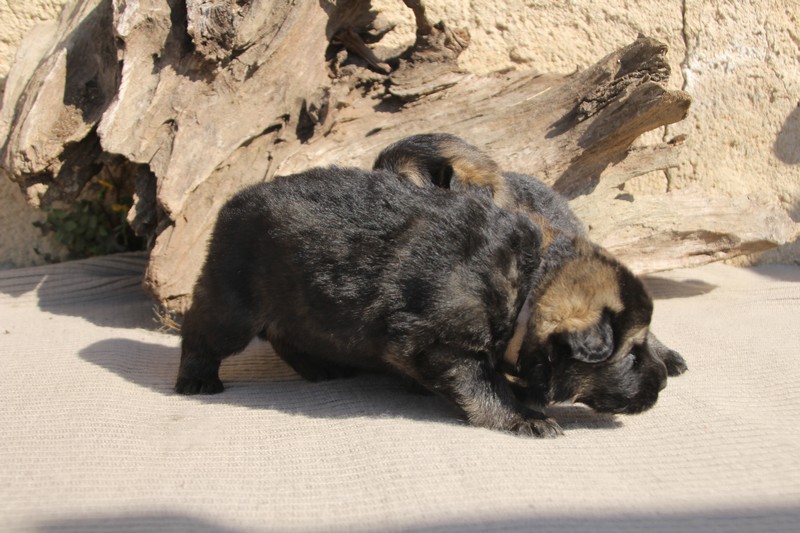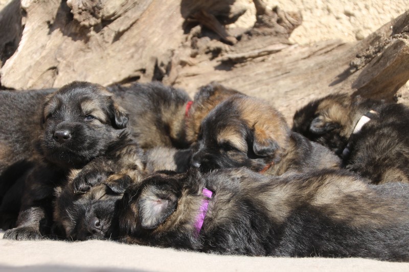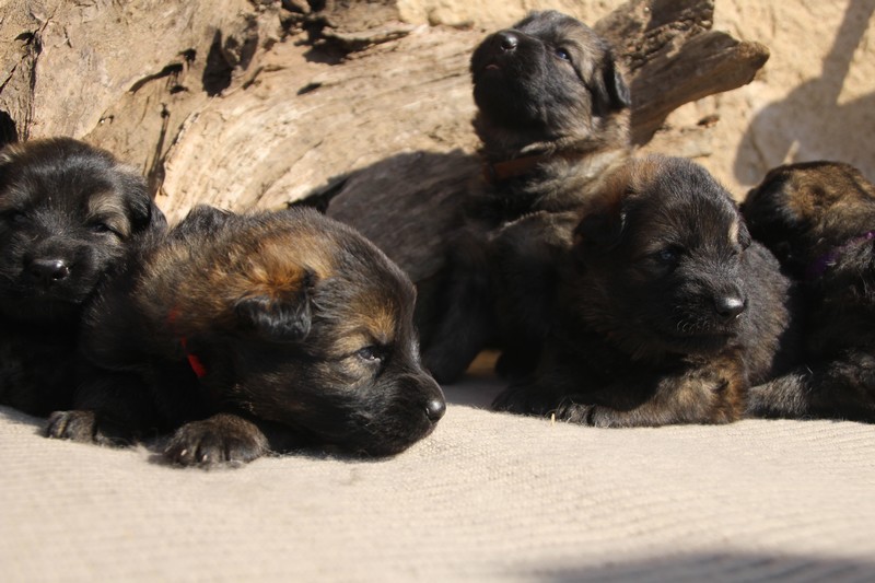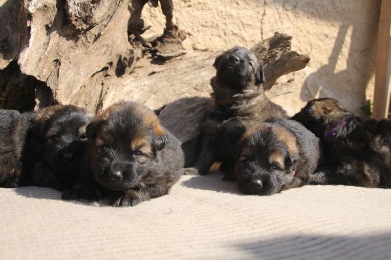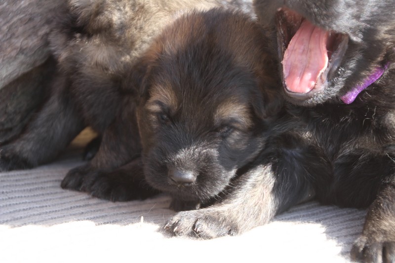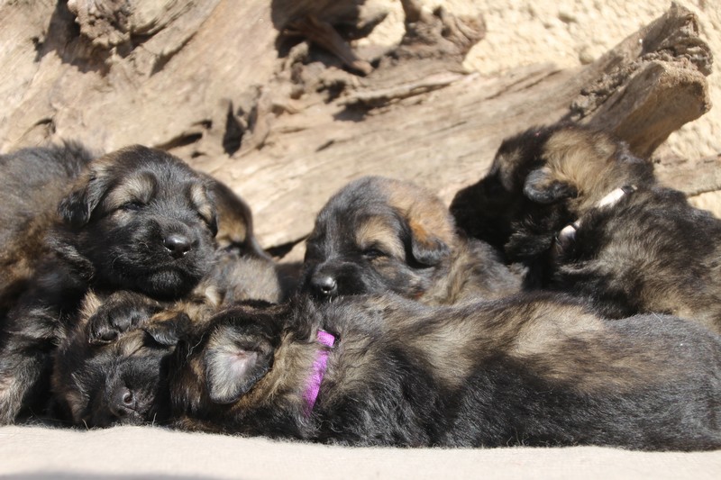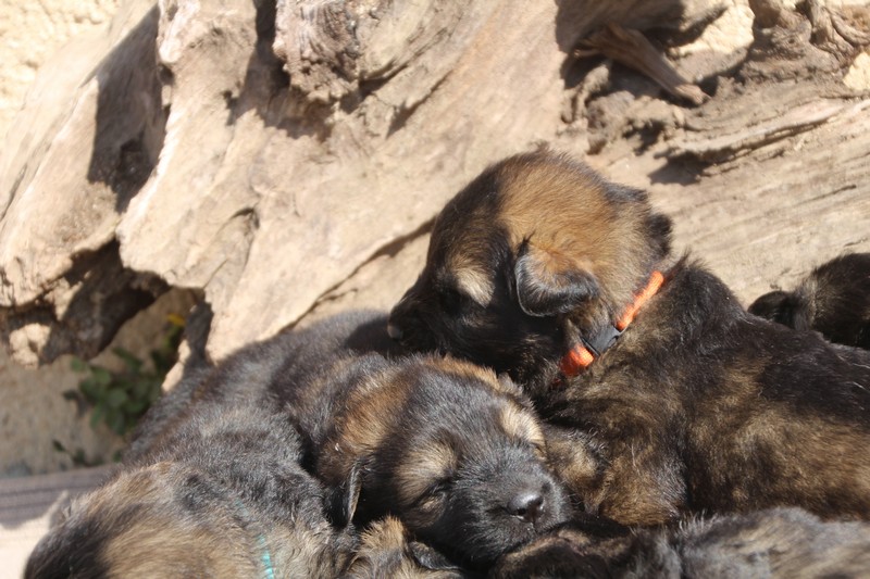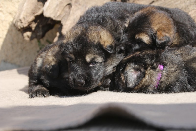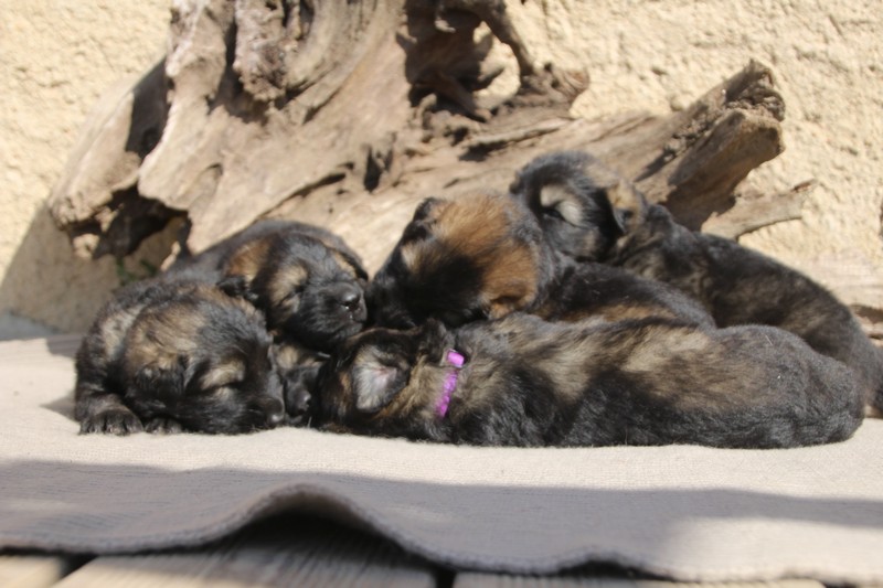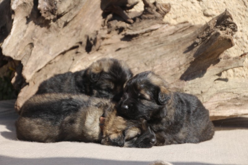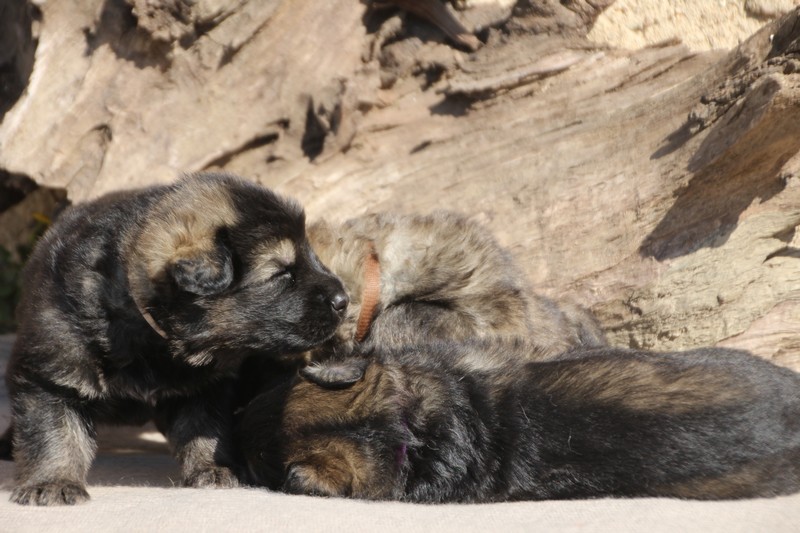 Première sortie au soleil, premières journées dans le parc d’activité et comme nous sommes des presque moyens grands et bien la caisse de mise bas à été démontée et nous évoluons dans un plus grand espace, en attendant d’avoir notre première fois en parc à chiots extérieur dans la semaine qui va venir.