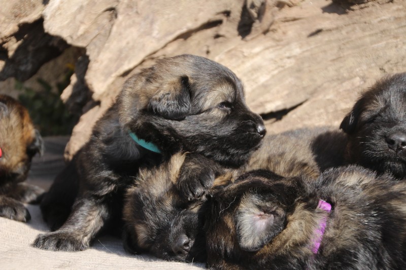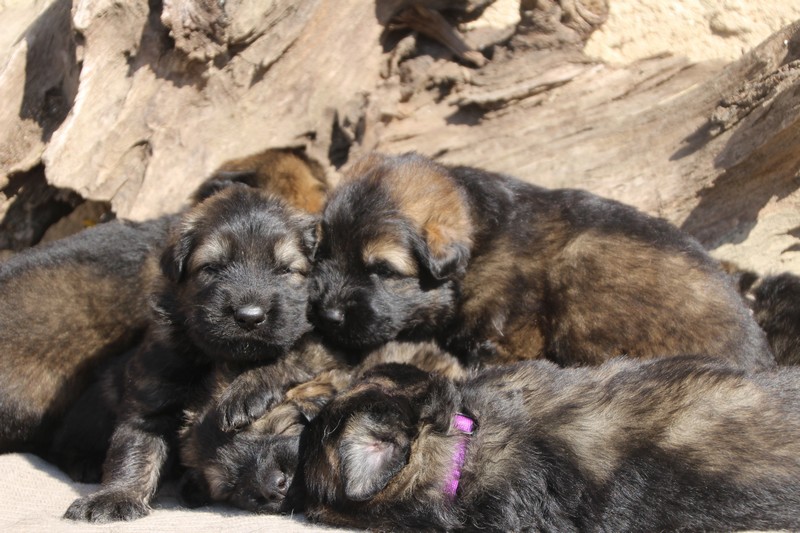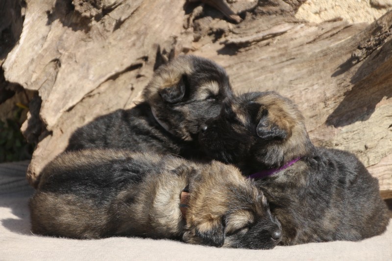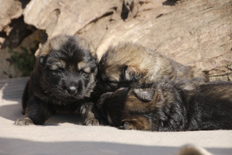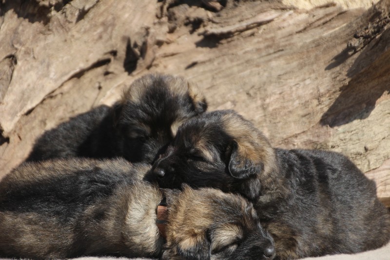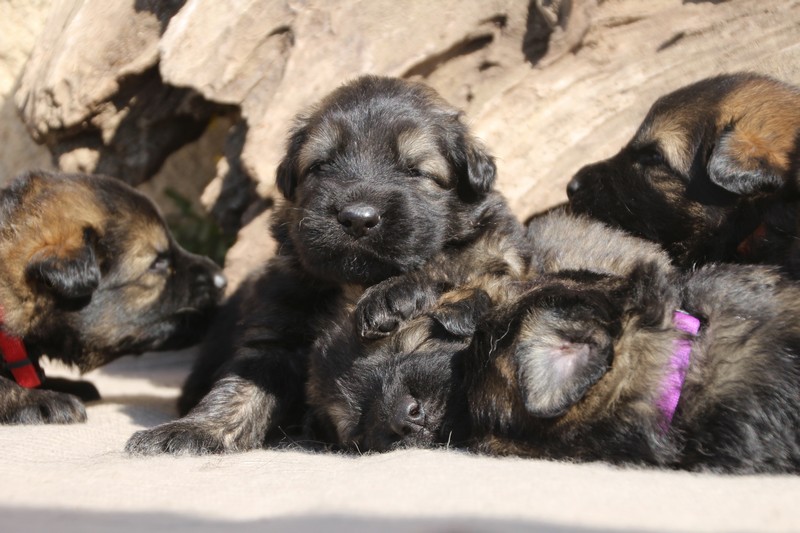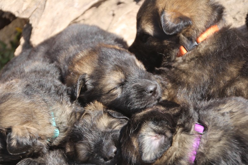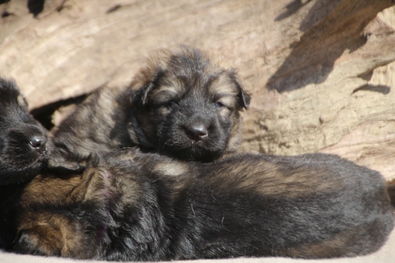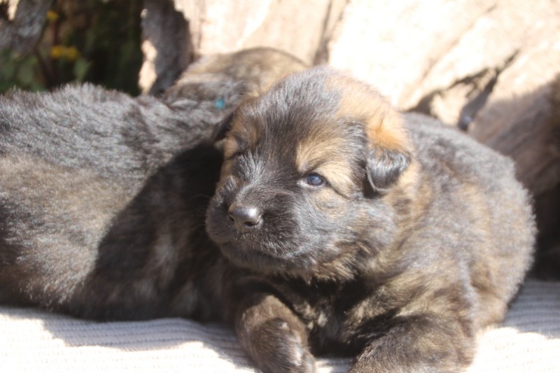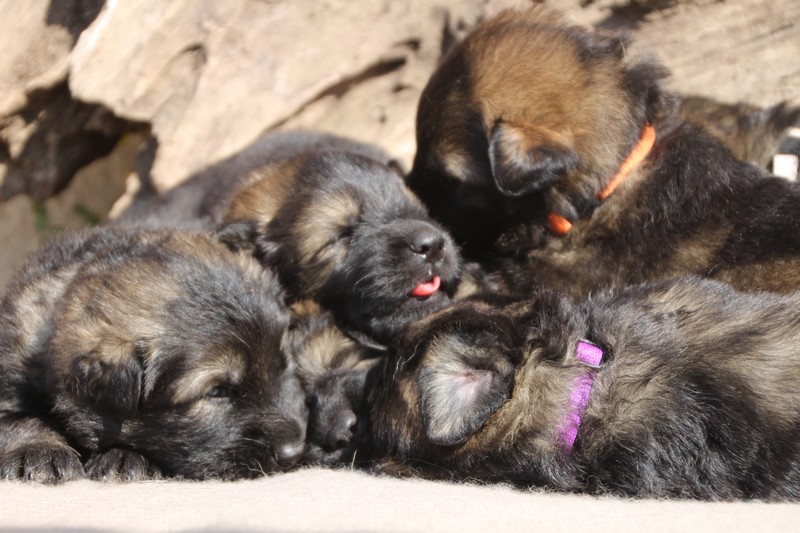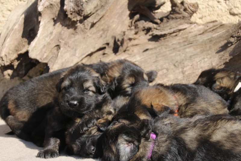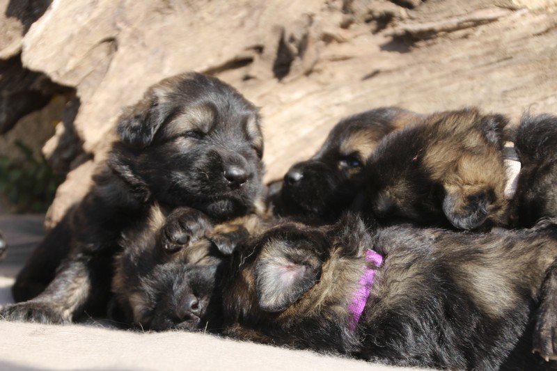 Première sortie au soleil, premières journées dans le parc d’activité et comme nous sommes des presque moyens grands et bien la caisse de mise bas à été démontée et nous évoluons dans un plus grand espace, en attendant d’avoir notre première fois en parc à chiots extérieur dans la semaine qui va venir.