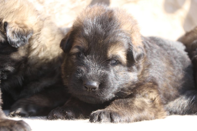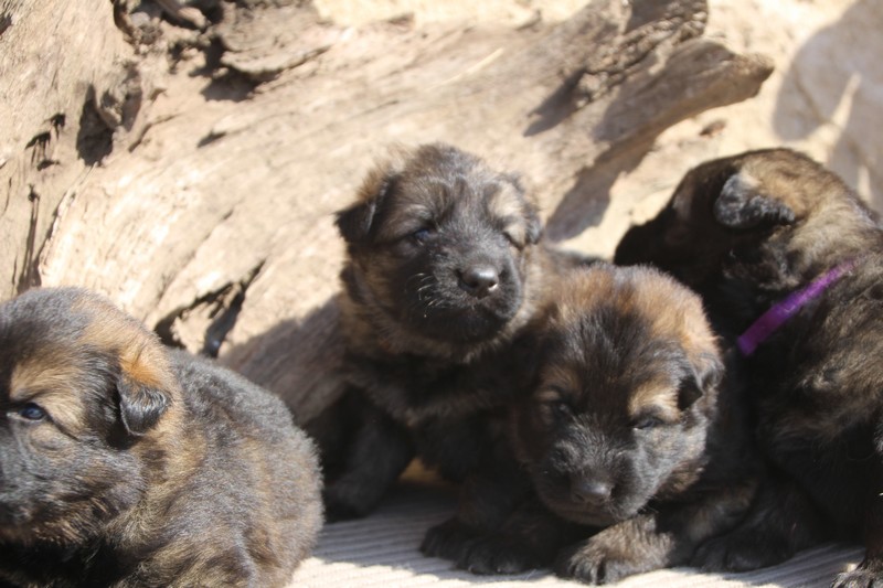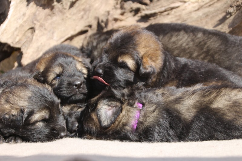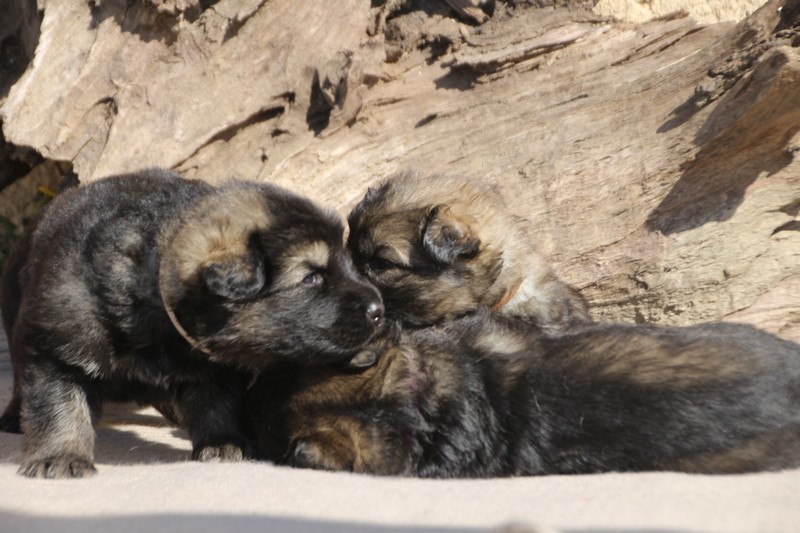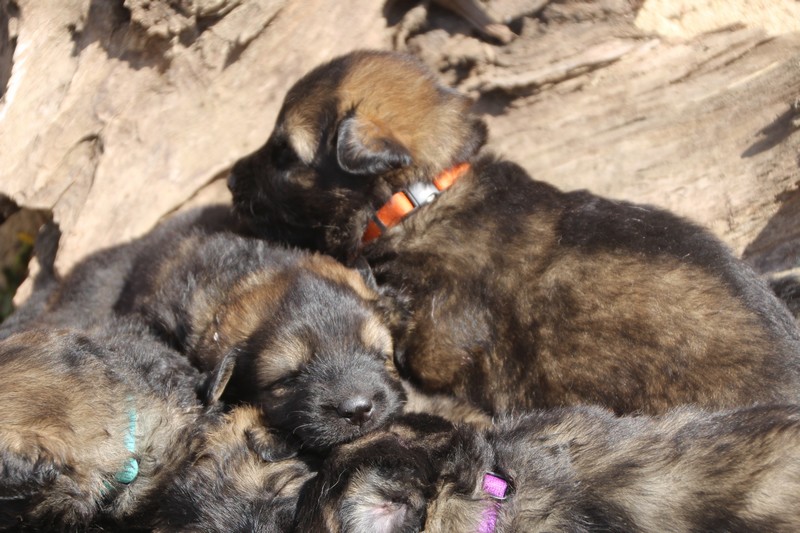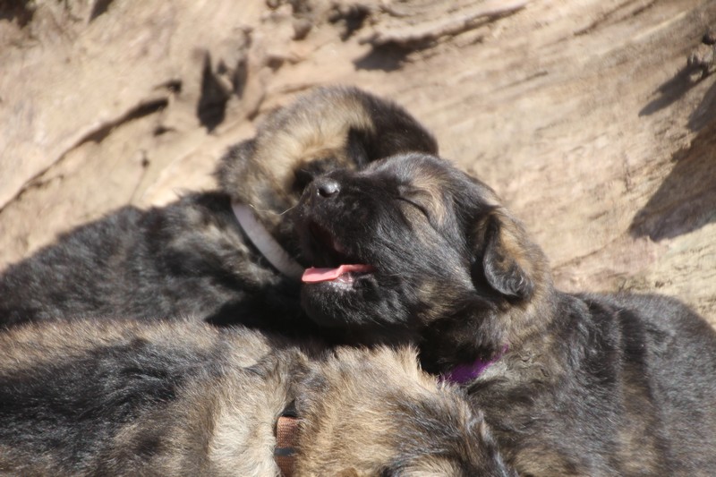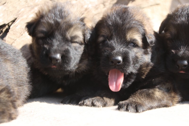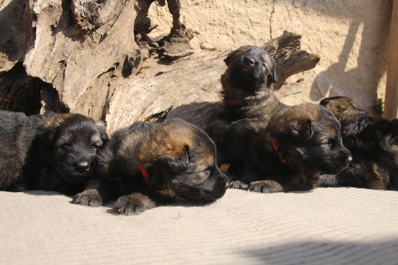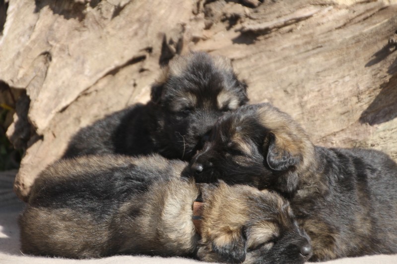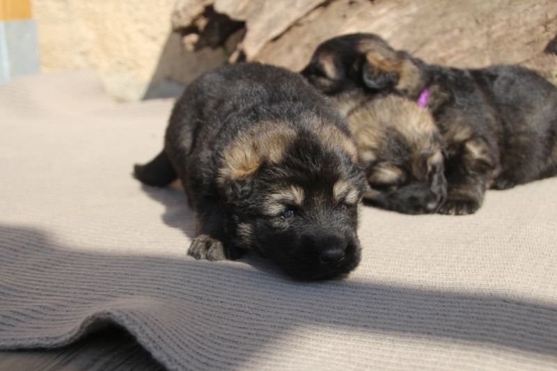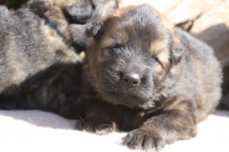 Première sortie au soleil, premières journées dans le parc d’activité et comme nous sommes des presque moyens grands et bien la caisse de mise bas à été démontée et nous évoluons dans un plus grand espace, en attendant d’avoir notre première fois en parc à chiots extérieur dans la semaine qui va venir.