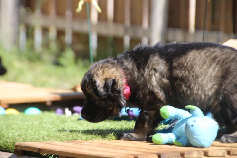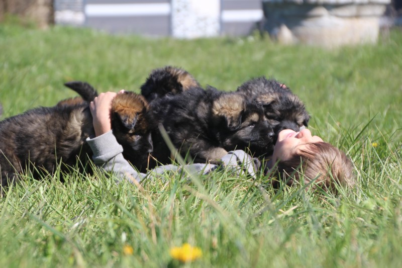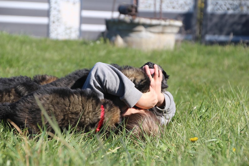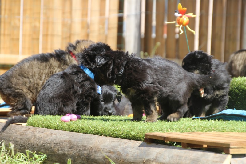 Nous avons également quitté la nurserie pour les nuits, maintenant nous sommes dans la grande pièce avec canapés à nos dispositions et nous dormons tous ensemble sans nos mamans. D’ailleurs nos mamans viennent nous voir que par petits moments dans la journée et le restant de la meute vient aussi nous rendre visite.