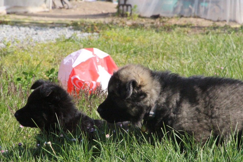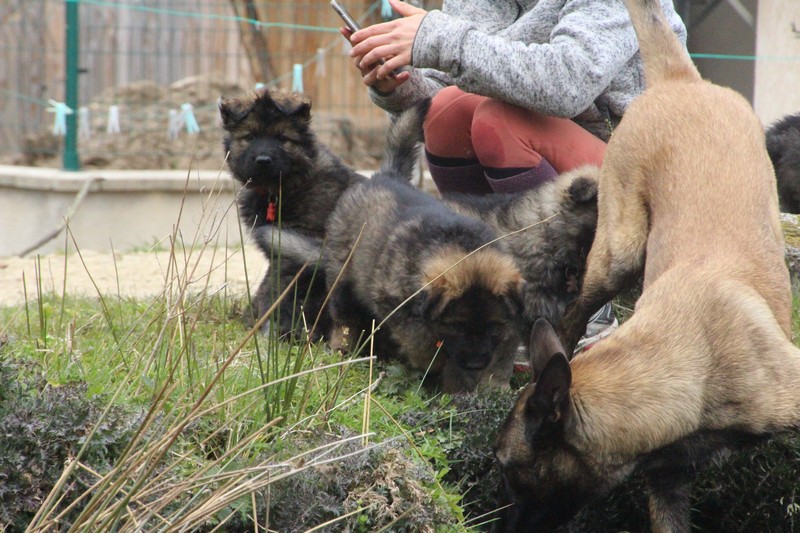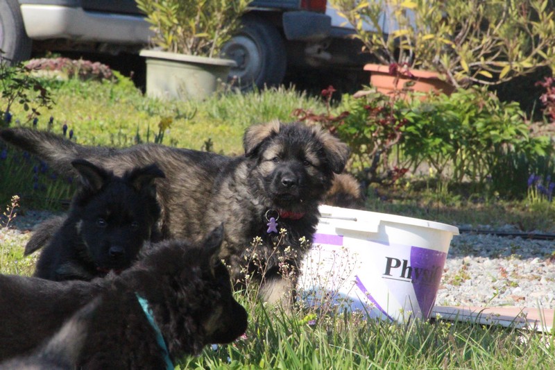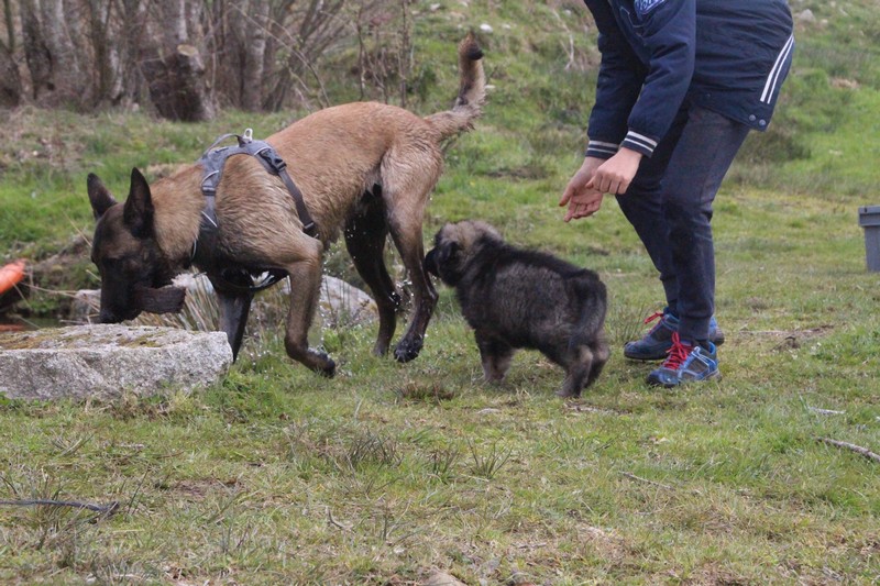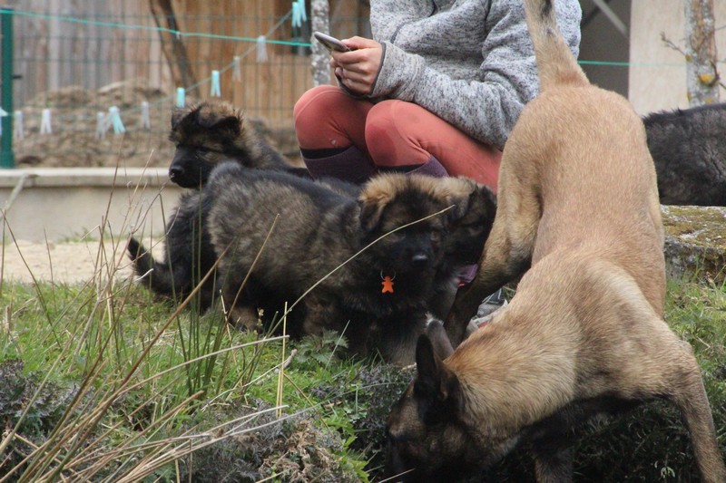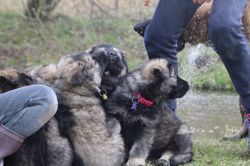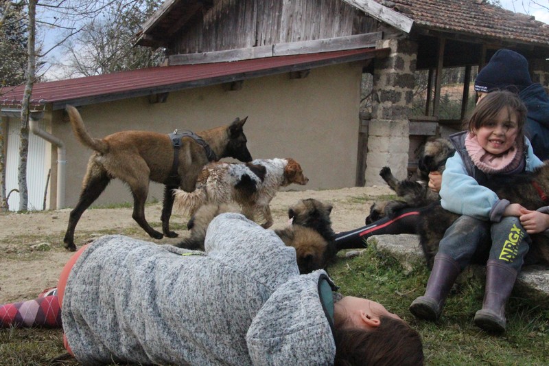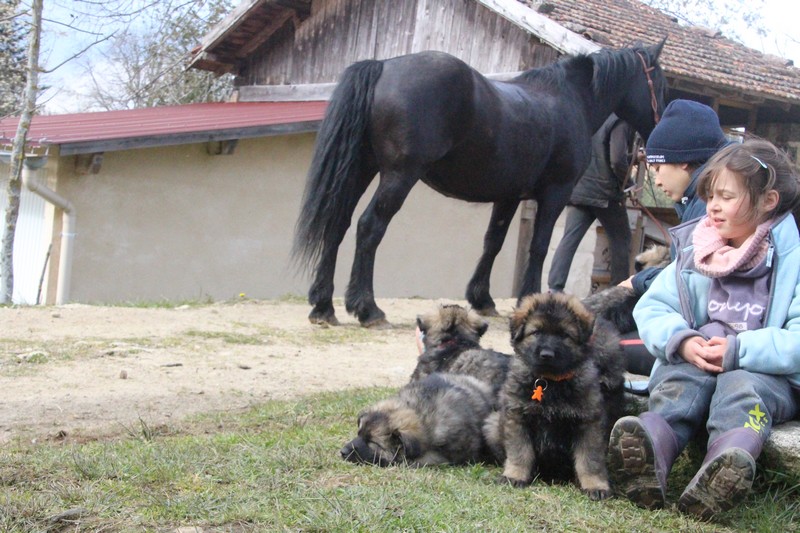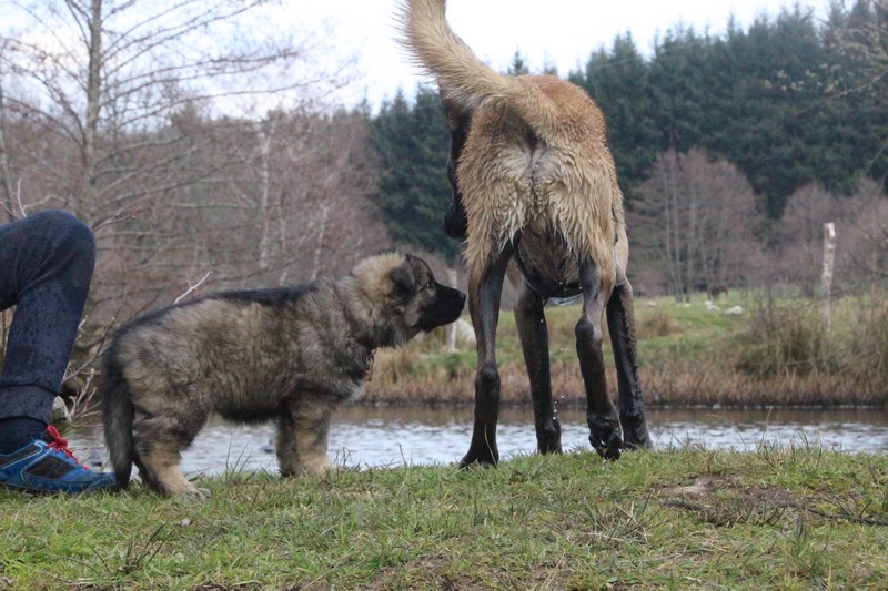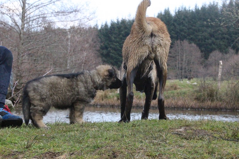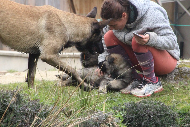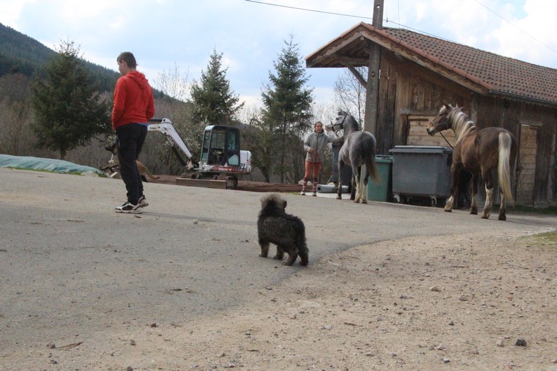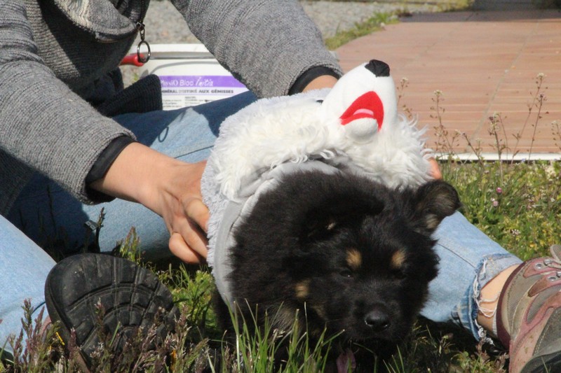 Cela aura été le mot d’ordre de la semaines tellement les nouveautés ont été nombreuses. Nous avons fait notre premier voyage en voiture afin de nous rendre dans un endroit plein de vie, nous avons pris un bain d’humain ou alors ce sont les humains qui ont pris un bain de chiots, on ne sait plus très bien dans quel sens cela à commencé. Nous avons rencontré des chiens, des chevaux, des chèvres, des moutons. Nous sommes rentré épuisé de notre périple…