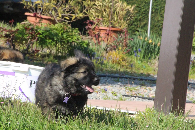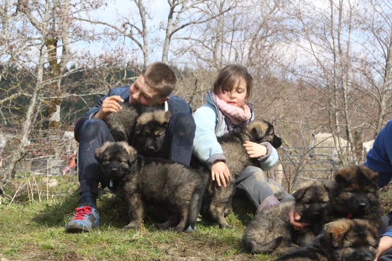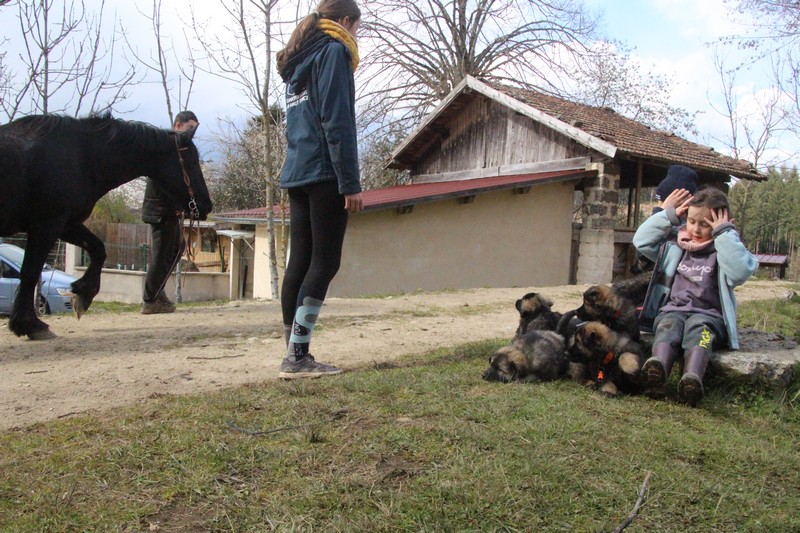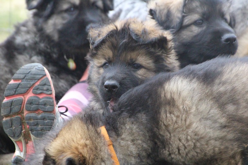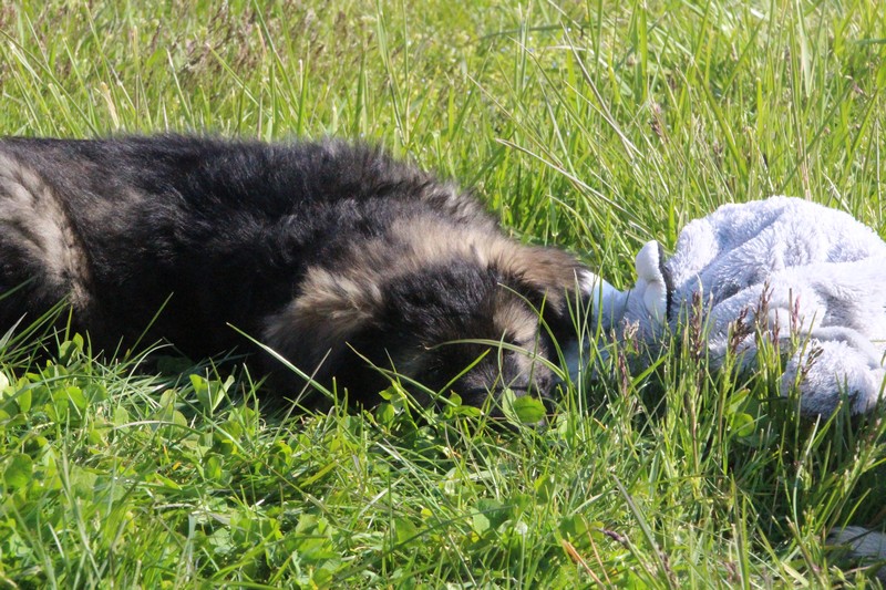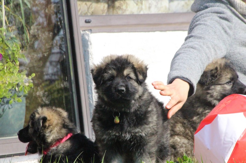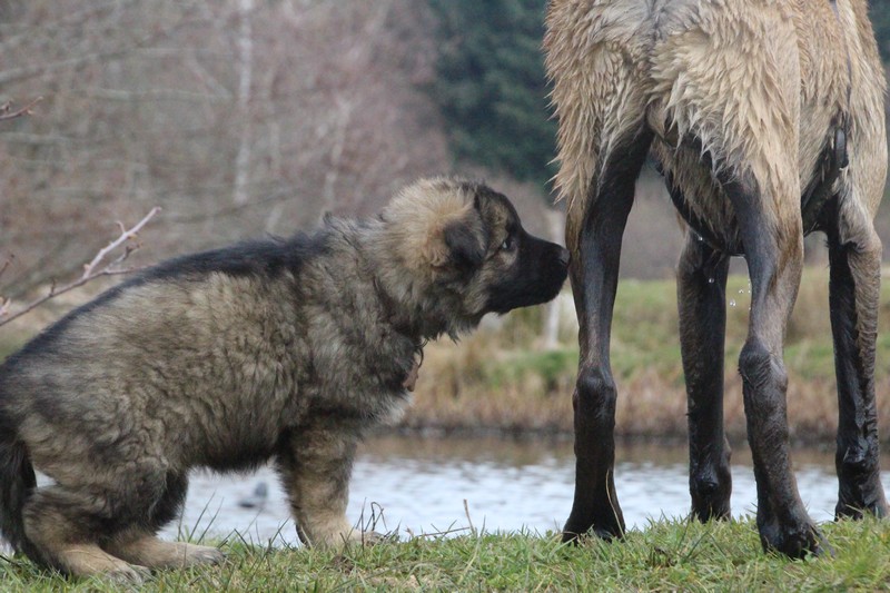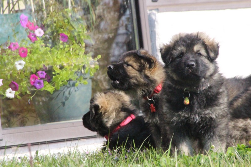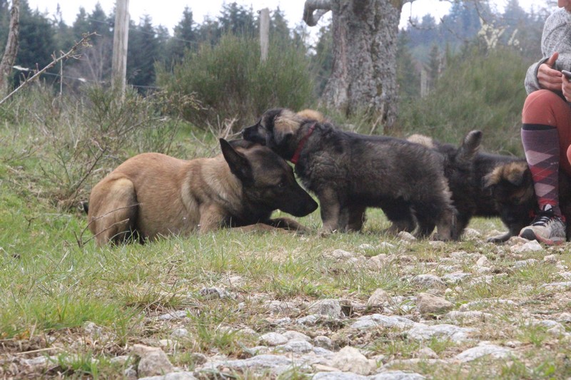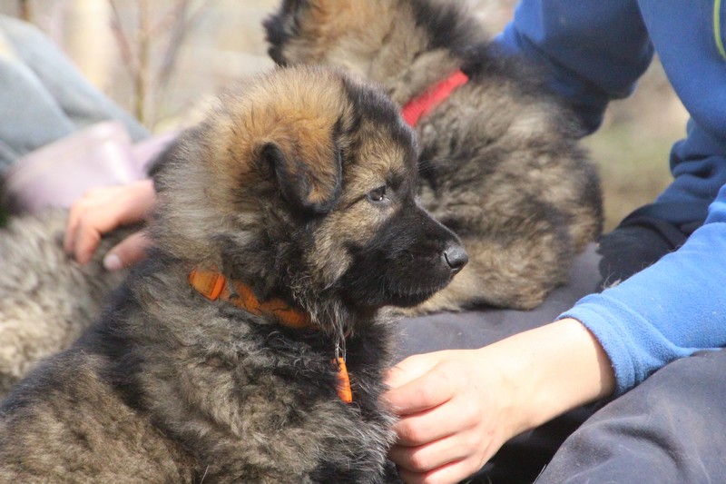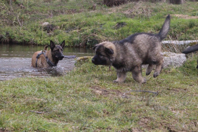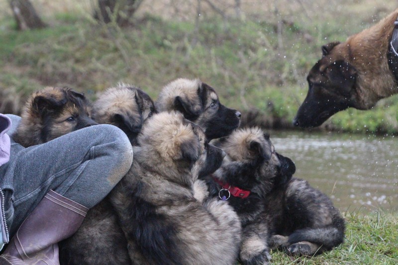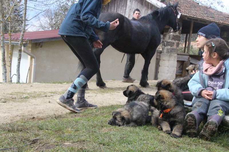 Cela aura été le mot d’ordre de la semaines tellement les nouveautés ont été nombreuses. Nous avons fait notre premier voyage en voiture afin de nous rendre dans un endroit plein de vie, nous avons pris un bain d’humain ou alors ce sont les humains qui ont pris un bain de chiots, on ne sait plus très bien dans quel sens cela à commencé. Nous avons rencontré des chiens, des chevaux, des chèvres, des moutons. Nous sommes rentré épuisé de notre périple…