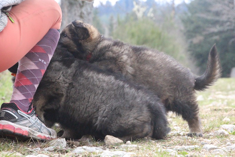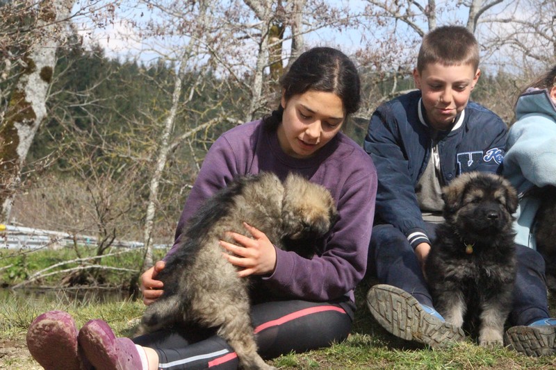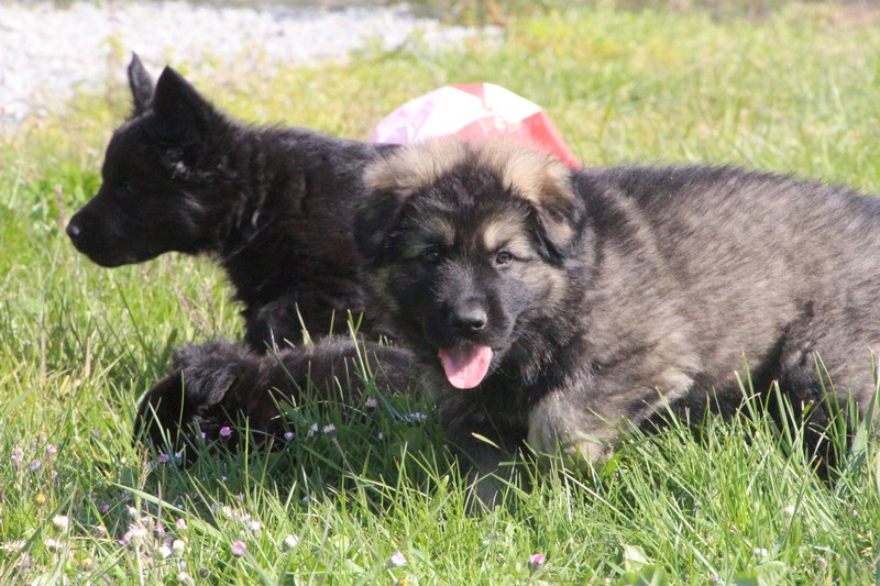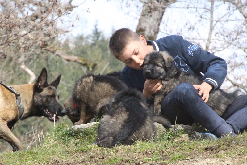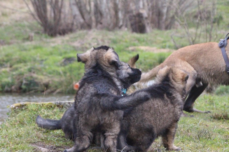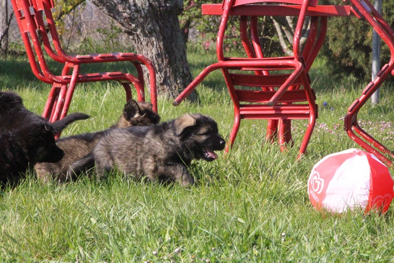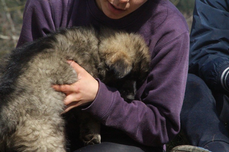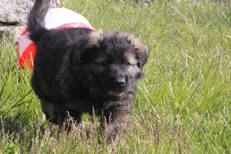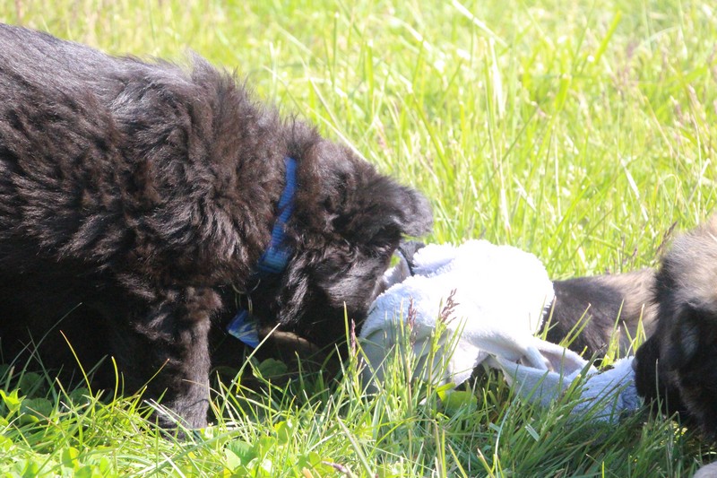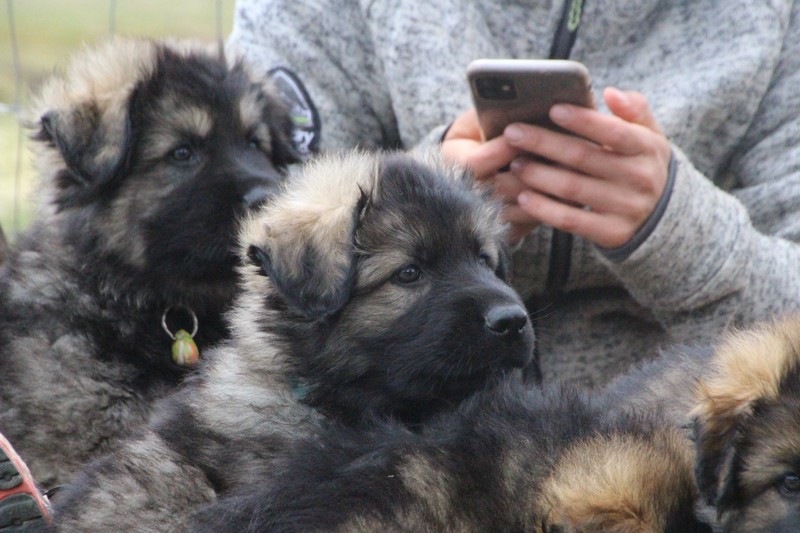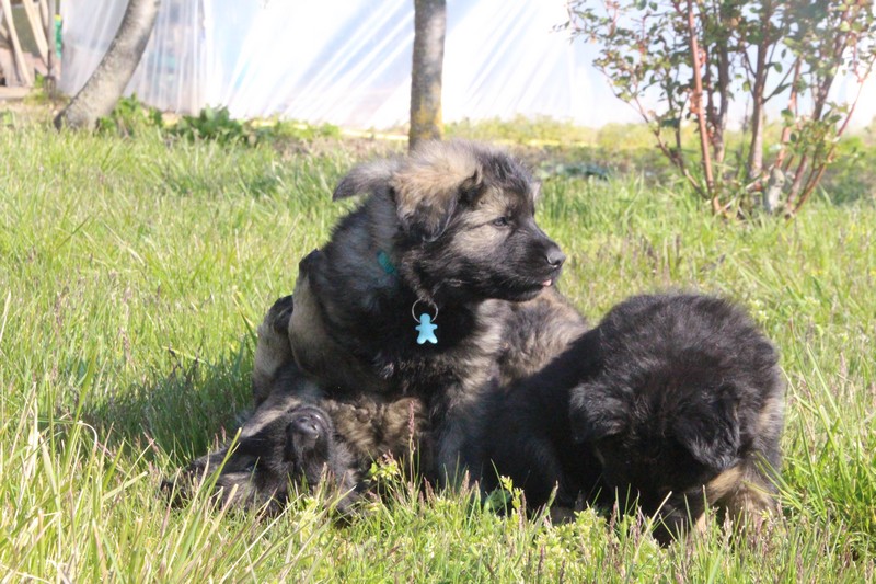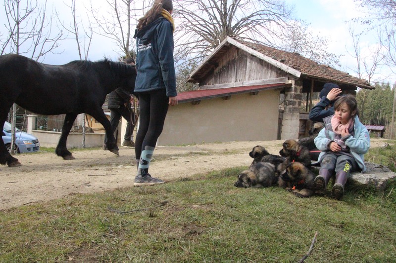 Cela aura été le mot d’ordre de la semaines tellement les nouveautés ont été nombreuses. Nous avons fait notre premier voyage en voiture afin de nous rendre dans un endroit plein de vie, nous avons pris un bain d’humain ou alors ce sont les humains qui ont pris un bain de chiots, on ne sait plus très bien dans quel sens cela à commencé. Nous avons rencontré des chiens, des chevaux, des chèvres, des moutons. Nous sommes rentré épuisé de notre périple…