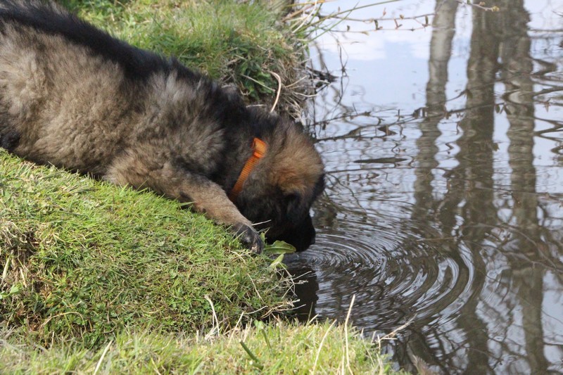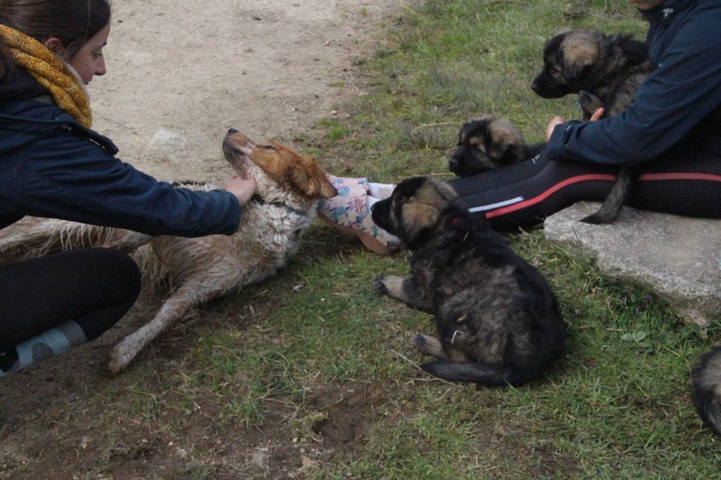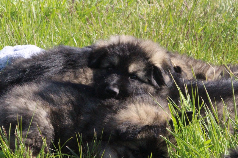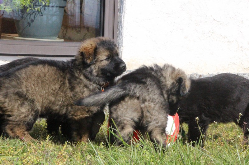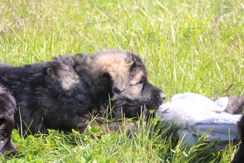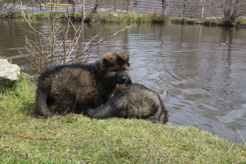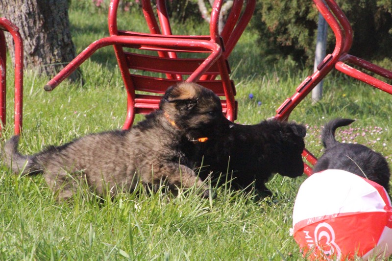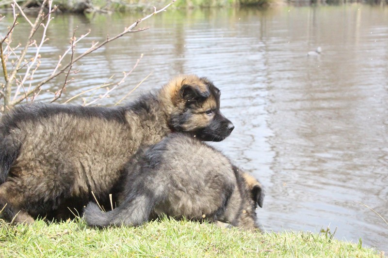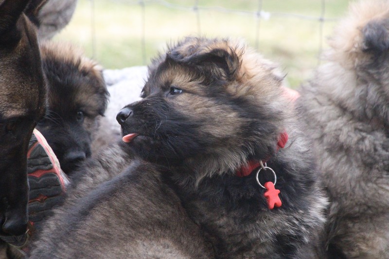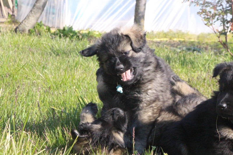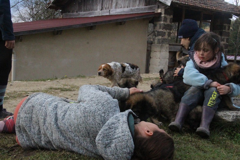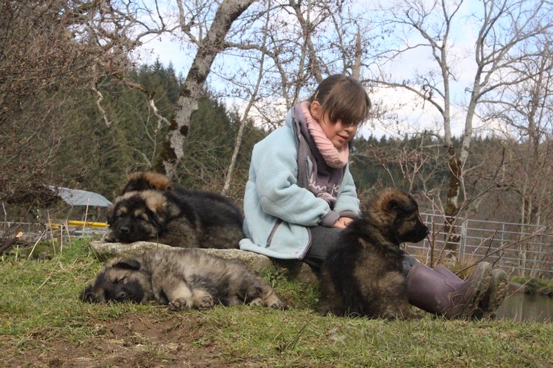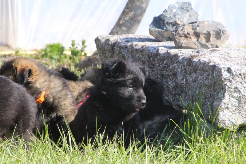 Cela aura été le mot d’ordre de la semaines tellement les nouveautés ont été nombreuses. Nous avons fait notre premier voyage en voiture afin de nous rendre dans un endroit plein de vie, nous avons pris un bain d’humain ou alors ce sont les humains qui ont pris un bain de chiots, on ne sait plus très bien dans quel sens cela à commencé. Nous avons rencontré des chiens, des chevaux, des chèvres, des moutons. Nous sommes rentré épuisé de notre périple…
