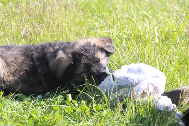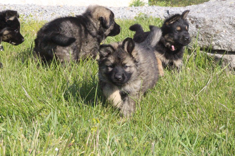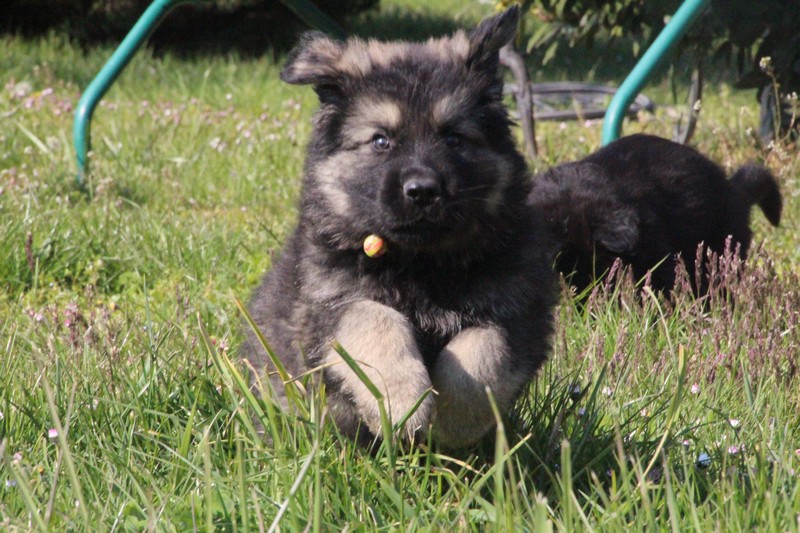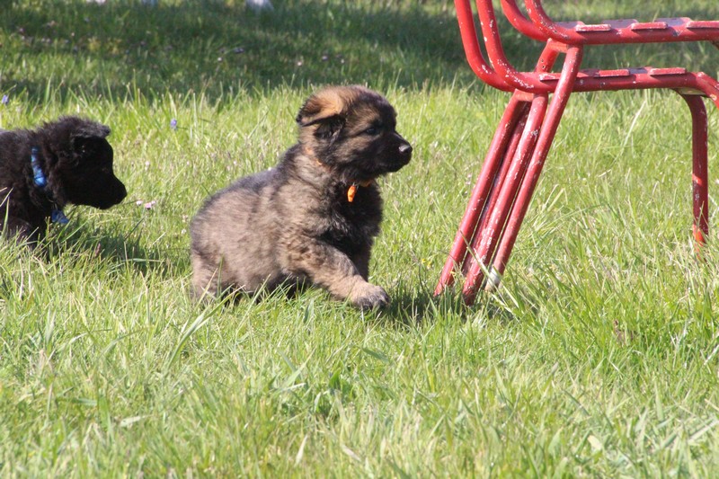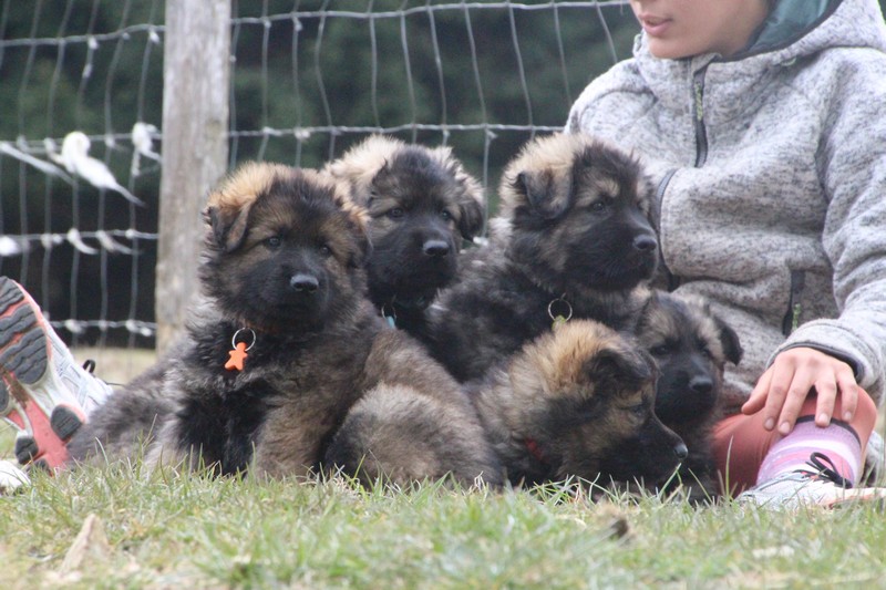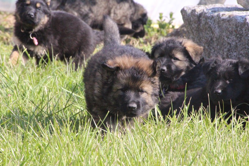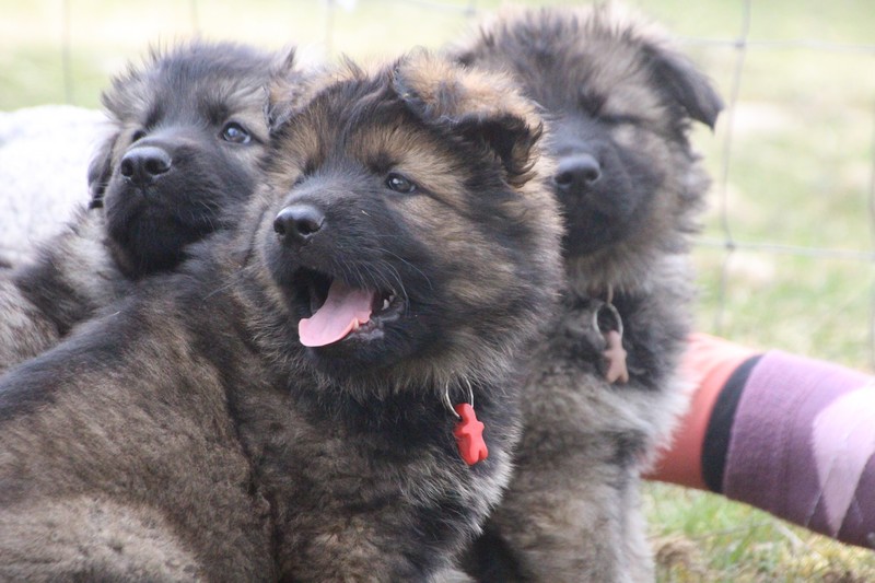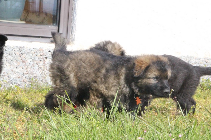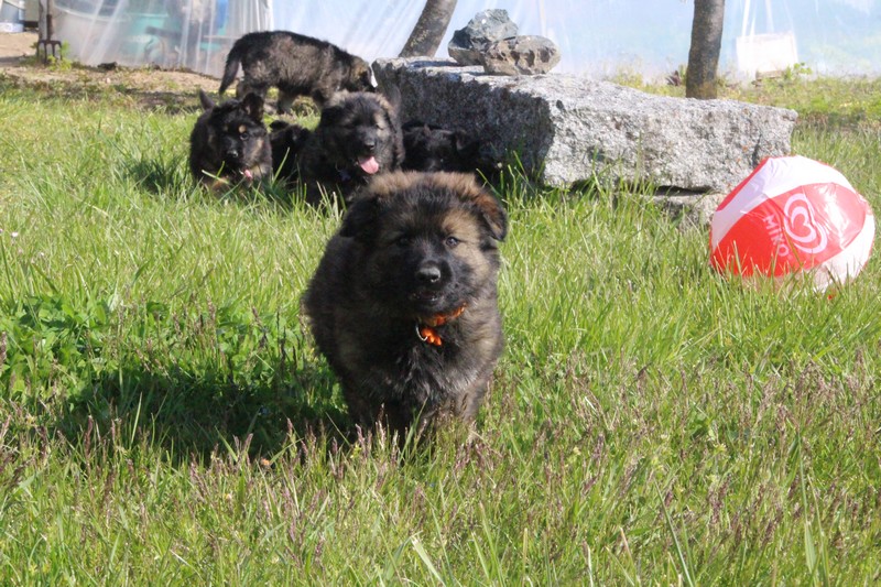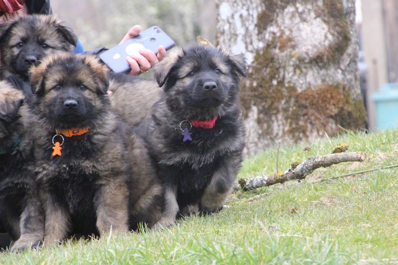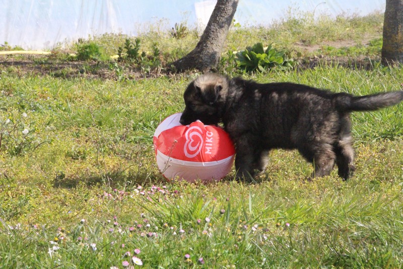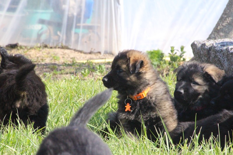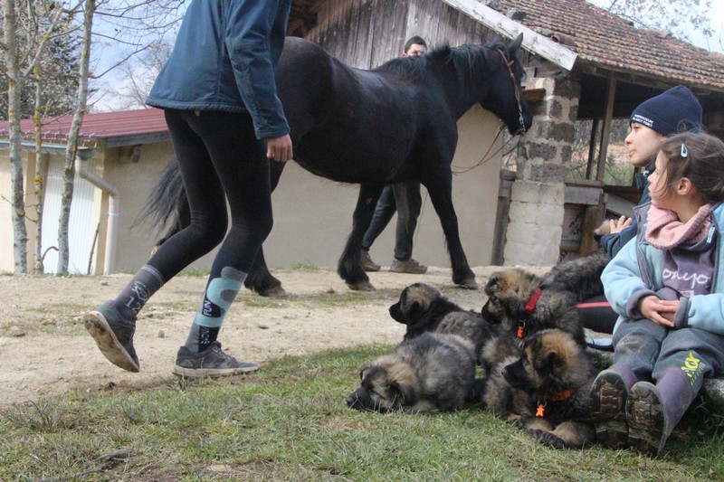 Cela aura été le mot d’ordre de la semaines tellement les nouveautés ont été nombreuses. Nous avons fait notre premier voyage en voiture afin de nous rendre dans un endroit plein de vie, nous avons pris un bain d’humain ou alors ce sont les humains qui ont pris un bain de chiots, on ne sait plus très bien dans quel sens cela à commencé. Nous avons rencontré des chiens, des chevaux, des chèvres, des moutons. Nous sommes rentré épuisé de notre périple…