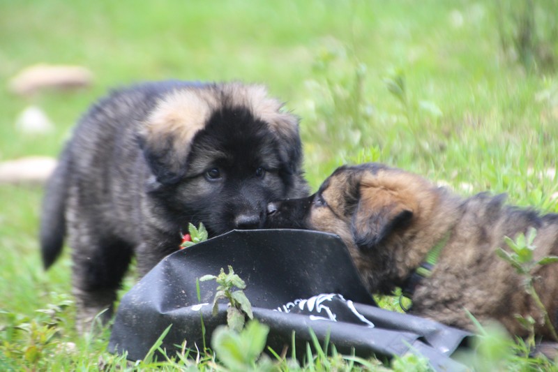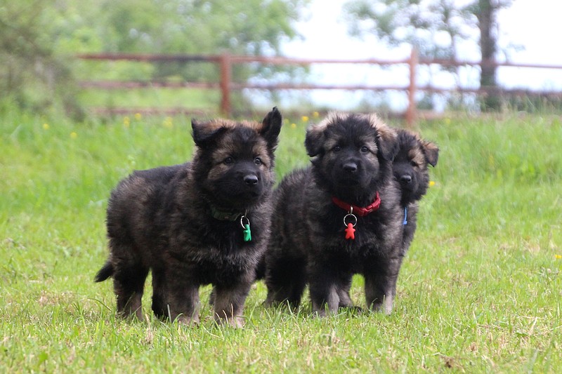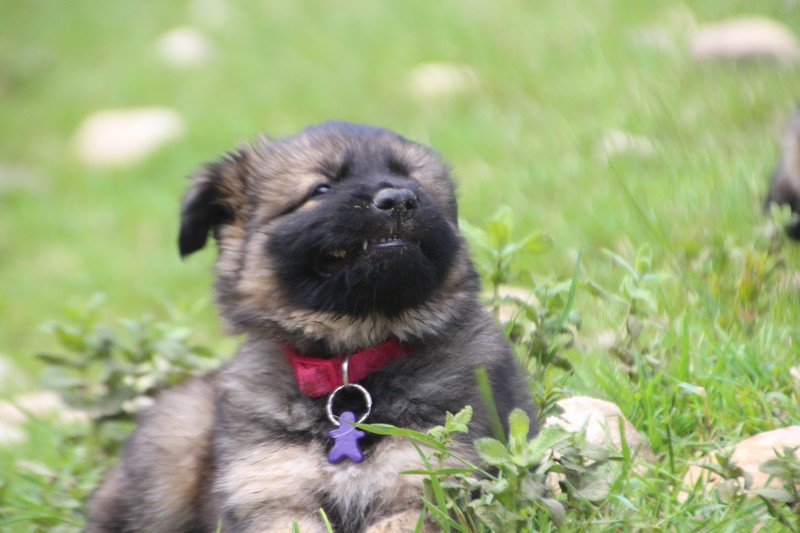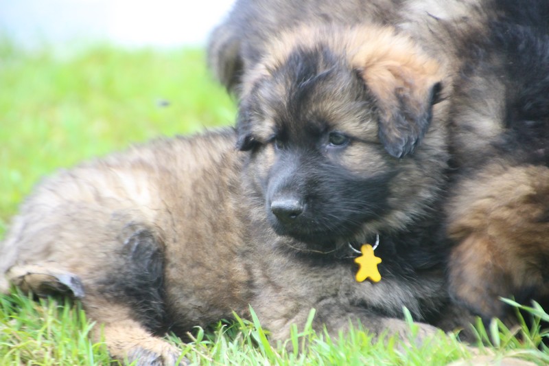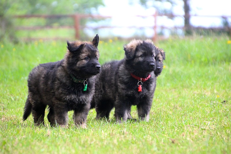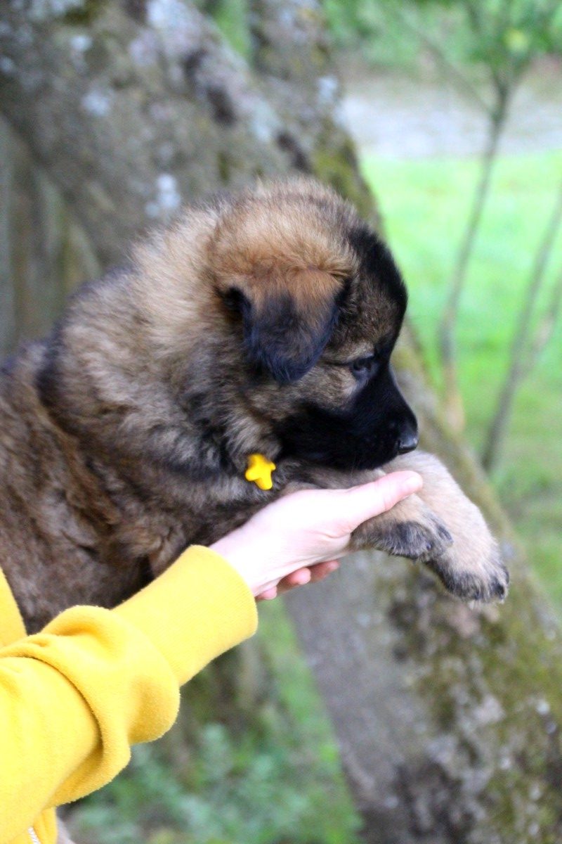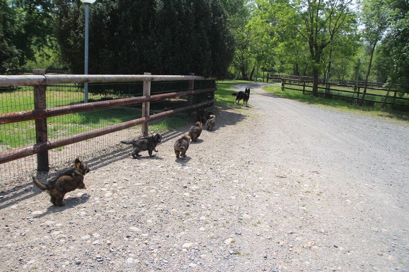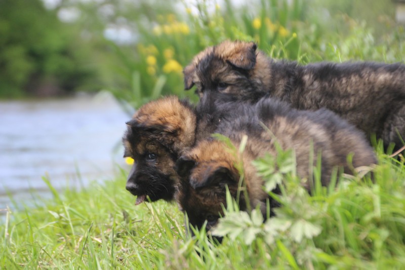 Nous voila arrivé à nos 7 semaines, ça va être le moment de mettre un nom sur nos couleurs de collier et pour cette occasion nous avons posé sous notre meilleurs profil. Enfin presque le meilleur, car les séances photos groupées ou bien alignées ne sont pas de tout repos… Pour cette occasion, nous avons appelé la famille afin de nous venir en aide! on prend, on pose, on part en courant, pendant qu’un troisième, vise, fait la mise au point et déclenche… et oui les séances photo de chiots de 7 semaines, devraient être reconnues discipline sportif des jeux olympiques…