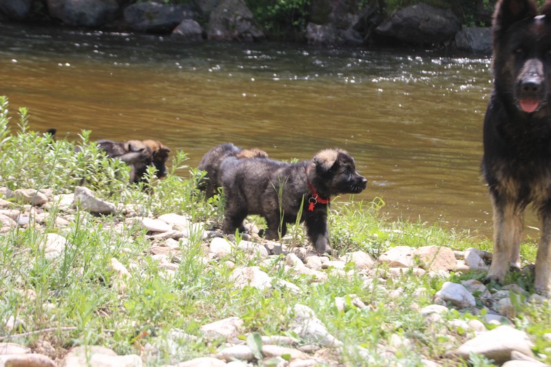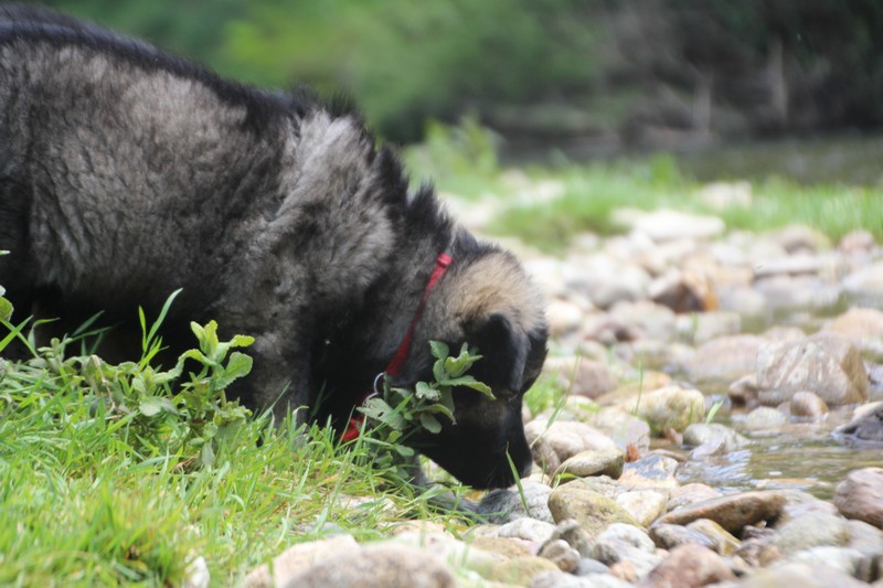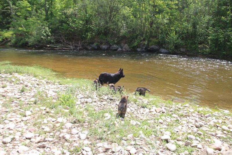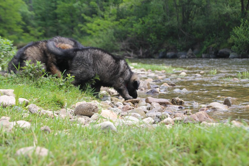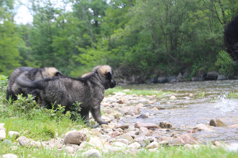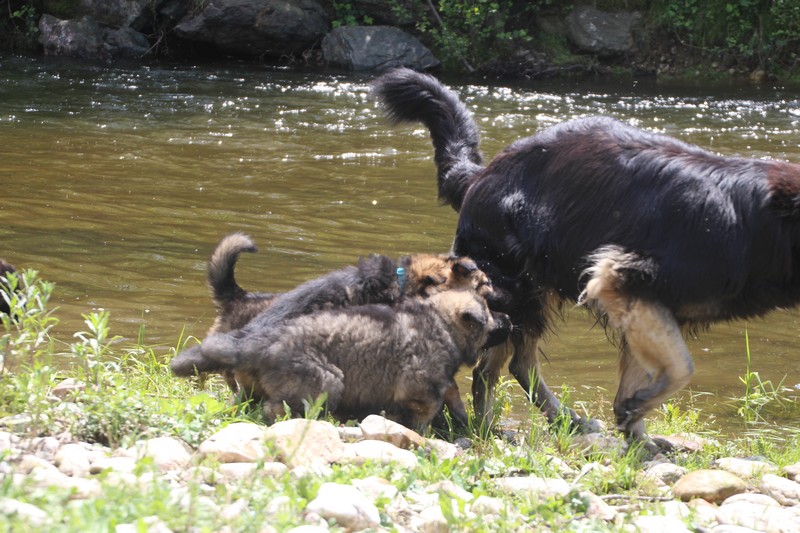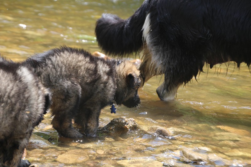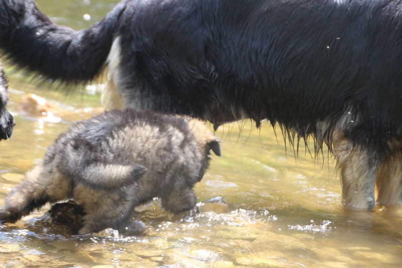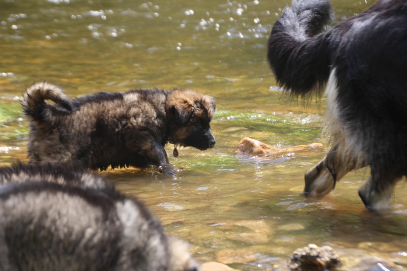 Nous avons enfin put descendre à la rivière, il y’a encore trop de courant pour nager, mais nous avons fait trempette de patte.