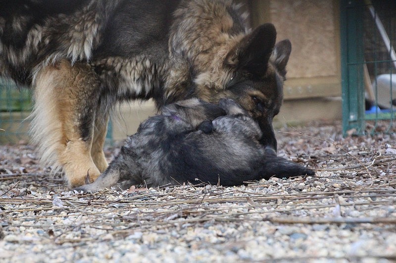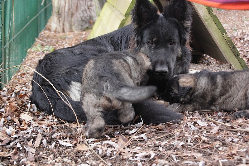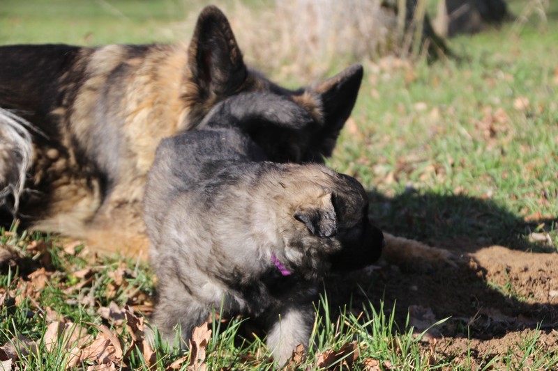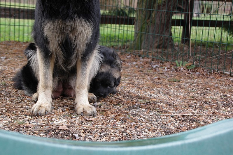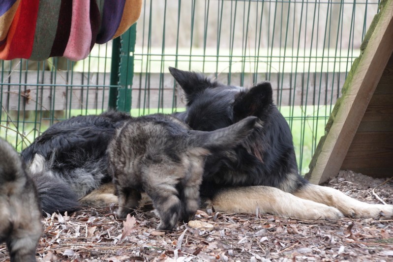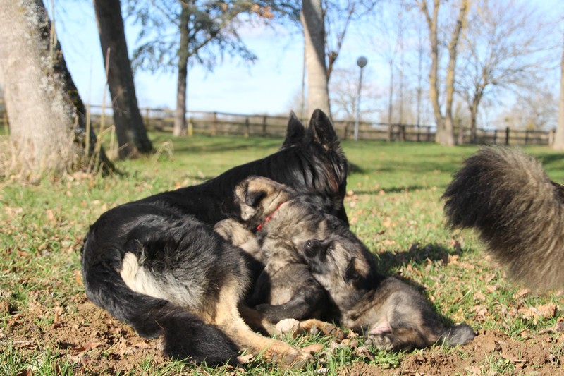 de savoir vivre pour Soukie… Mademoiselle avait déjà tété et voulait jouer avec maman et lui sauter dessus ! maman a dit non, Soukie a essayé par tout les moyens, mais quand maman dit non c’est non et tout passe par le regard.