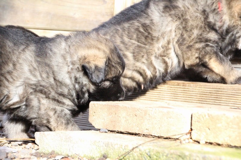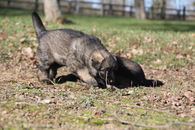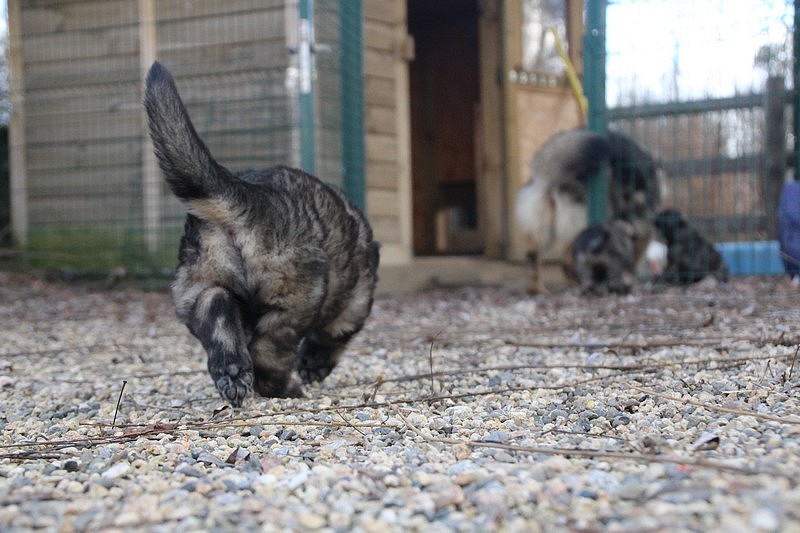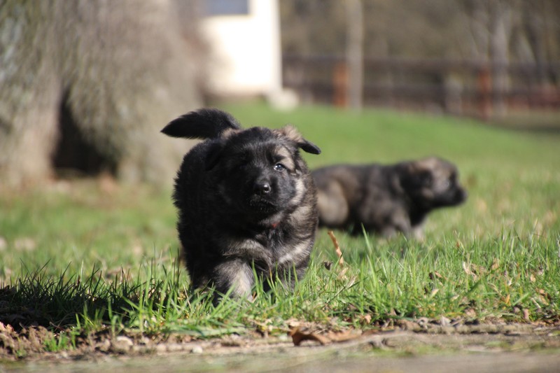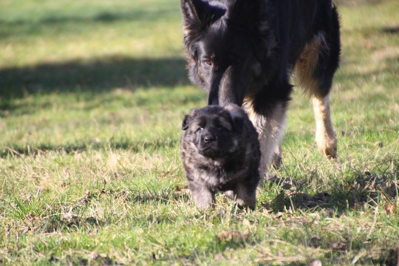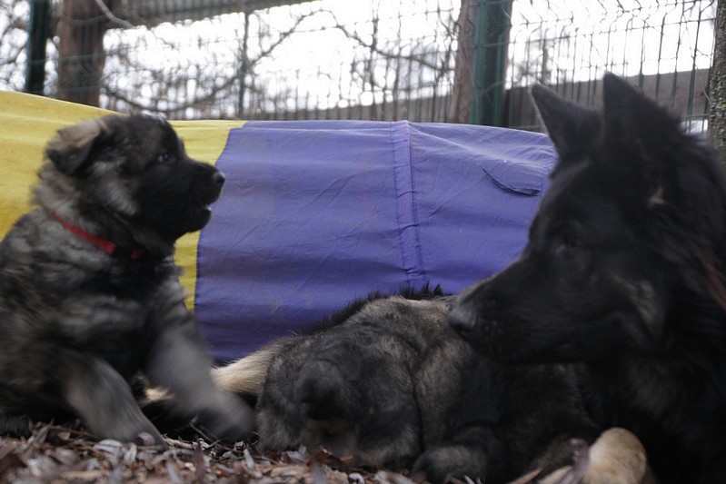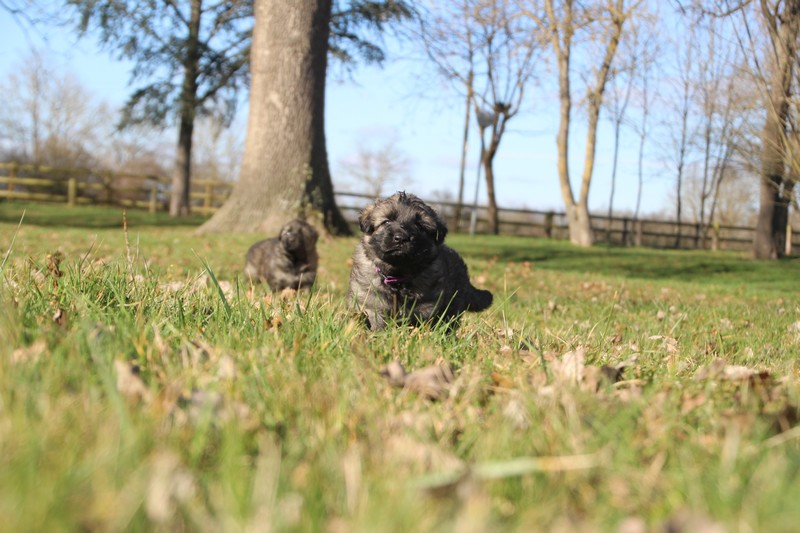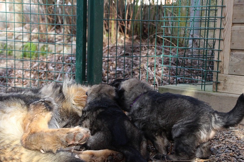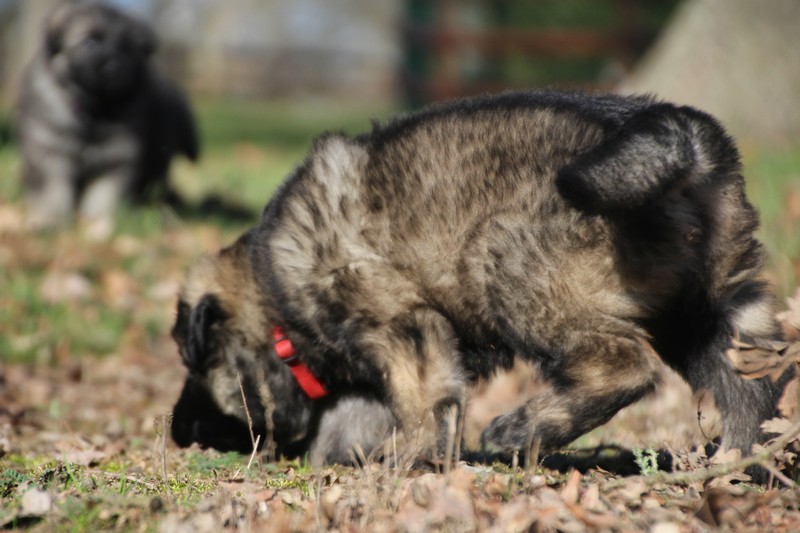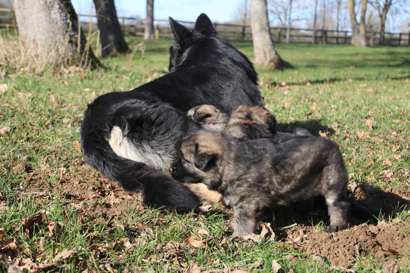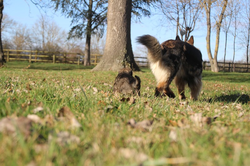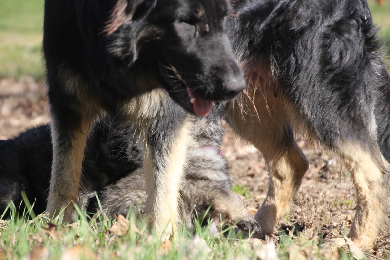 Enfin, il a fait un peu beau, nous avons découvert un nouvel endroit! Le parc à chiot. Nous sommes devenus des grands en a peine une nuit, toutes la meute était là pour nous accompagner, maman est restée avec nous un petit moment, mais maintenant nous évoluons seul, même pas peur.