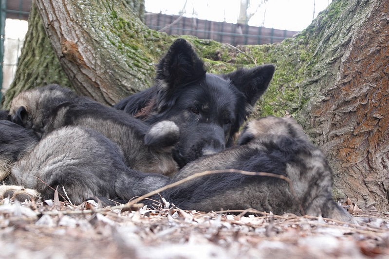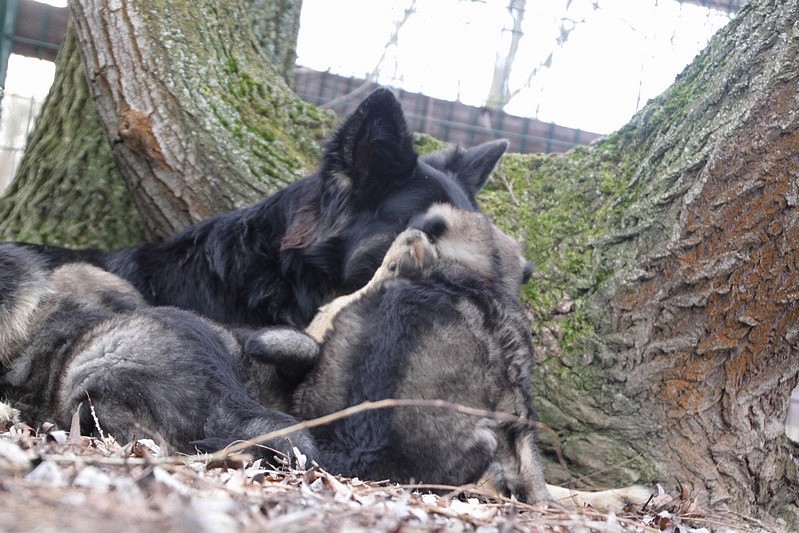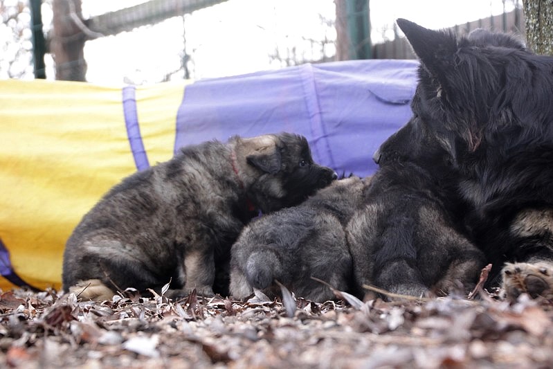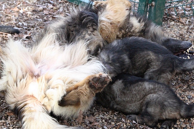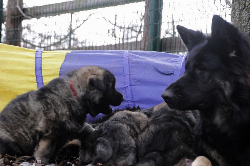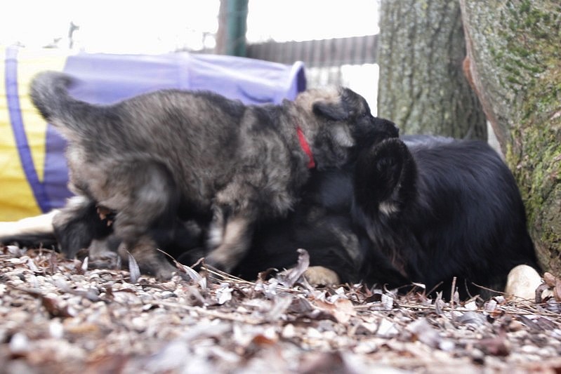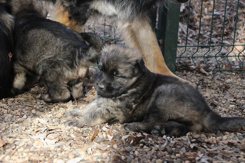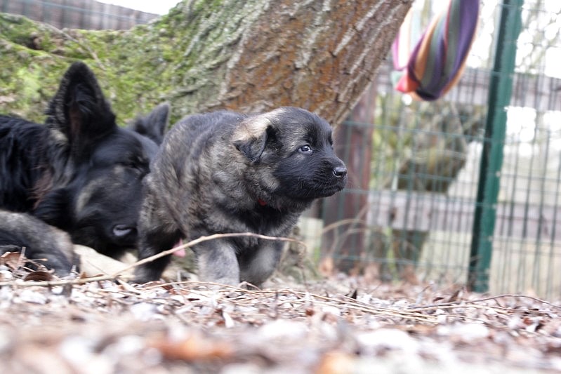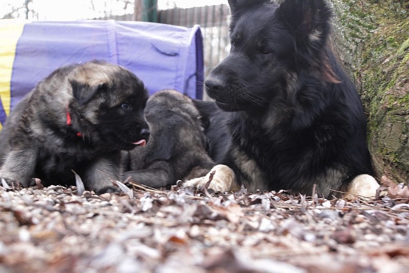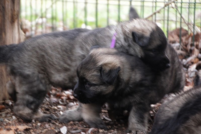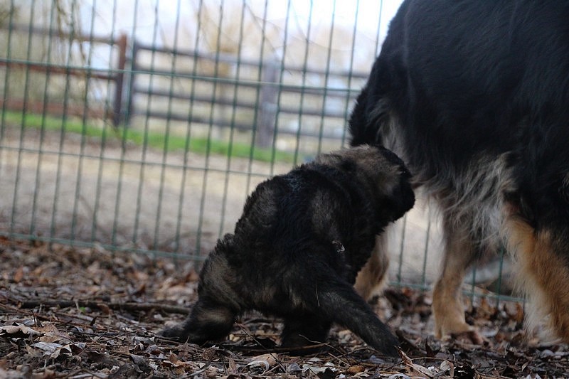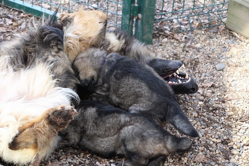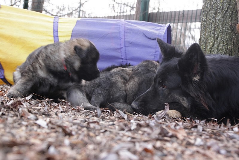 Enfin, il a fait un peu beau, nous avons découvert un nouvel endroit! Le parc à chiot. Nous sommes devenus des grands en a peine une nuit, toutes la meute était là pour nous accompagner, maman est restée avec nous un petit moment, mais maintenant nous évoluons seul, même pas peur.