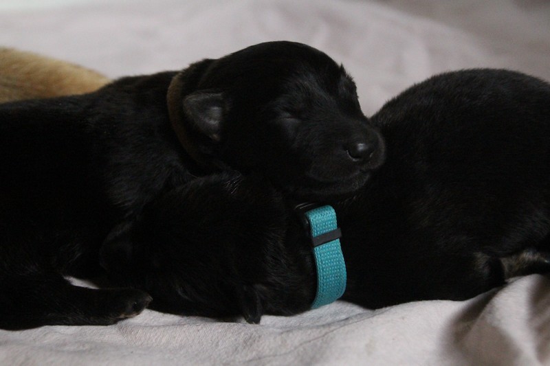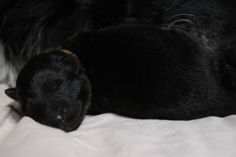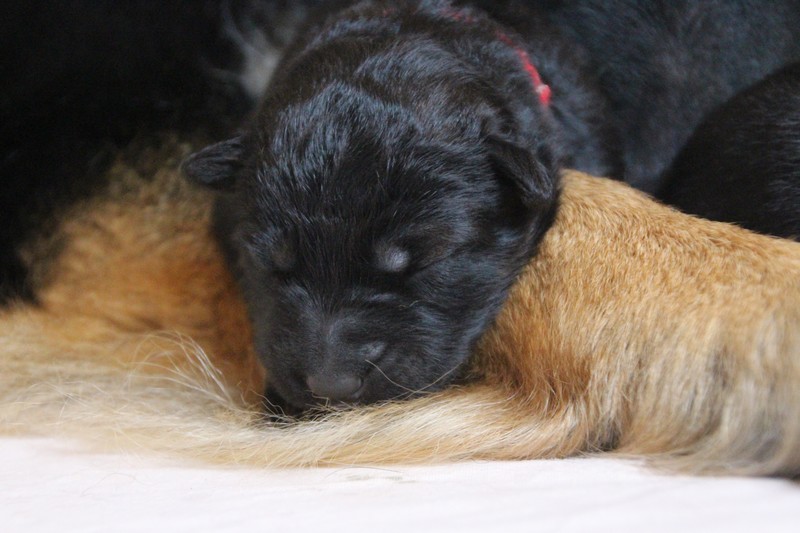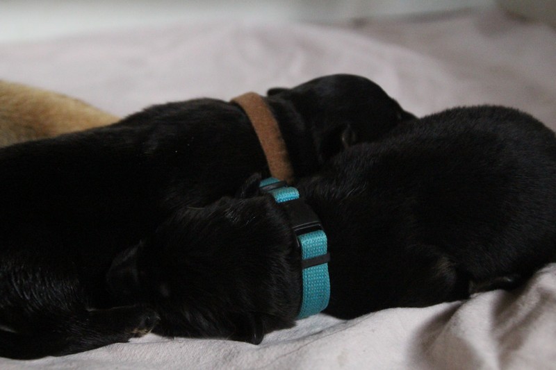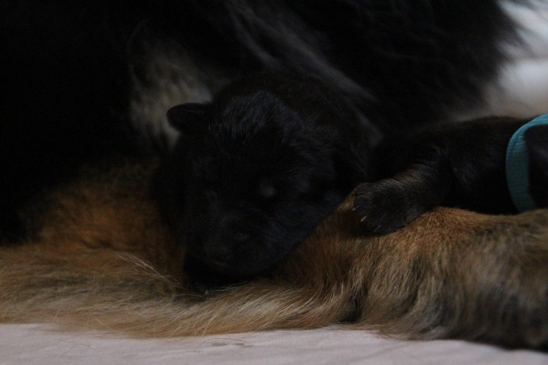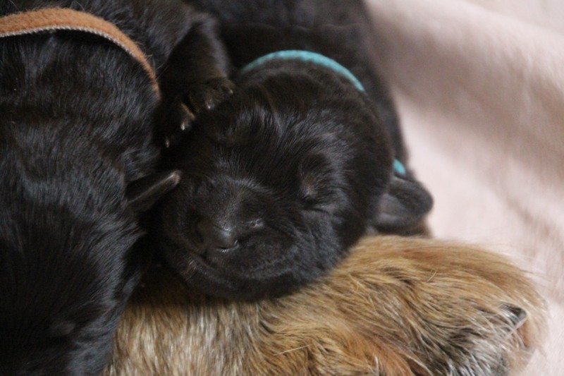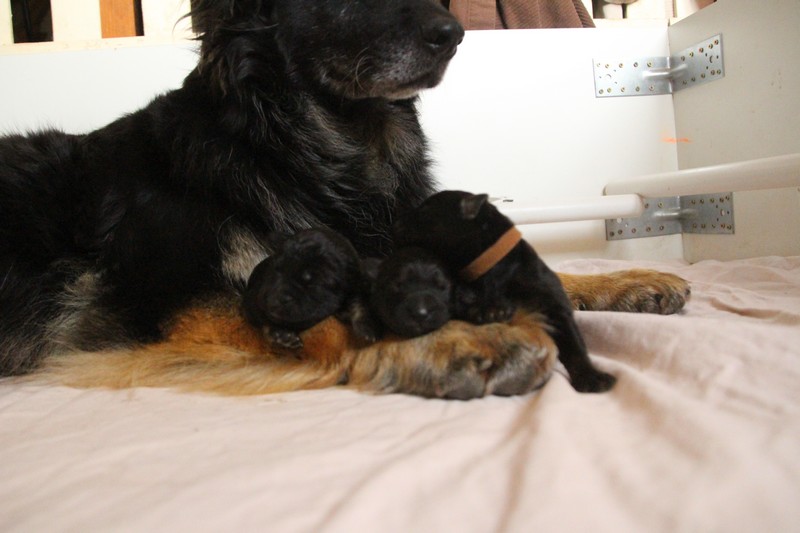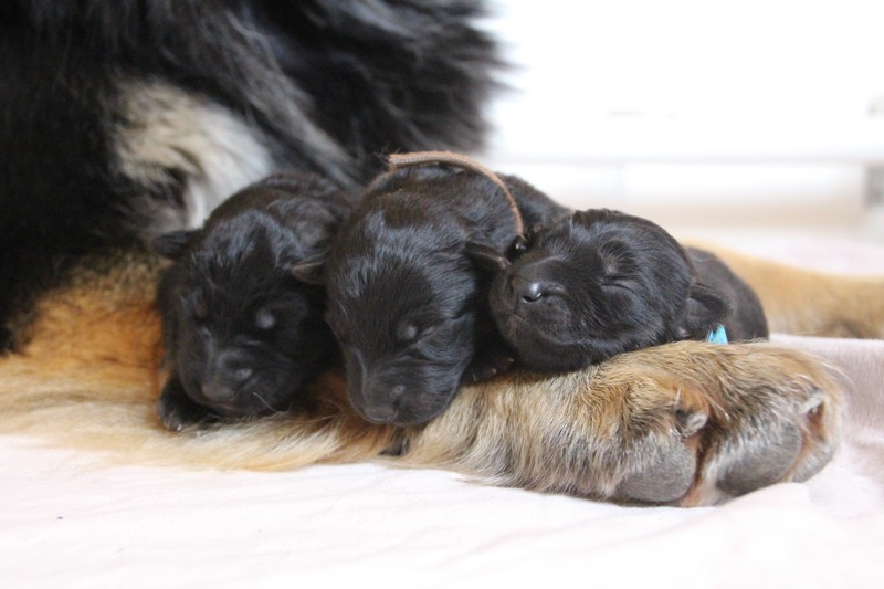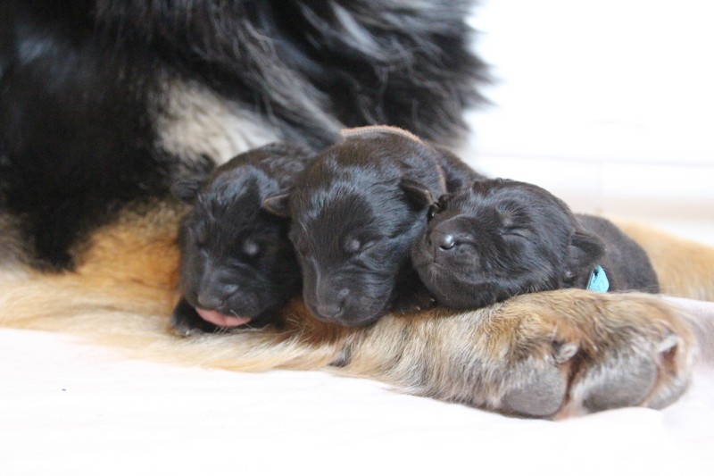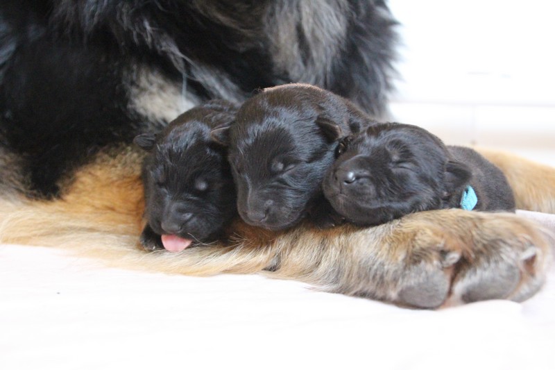 En attendant le 13 aout Thaïs a mis au monde 3 petits boules, 1 mâle fauve charbonné et deux femelle 1 noir et feu et 1 fauve charbonné.