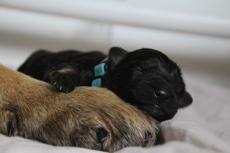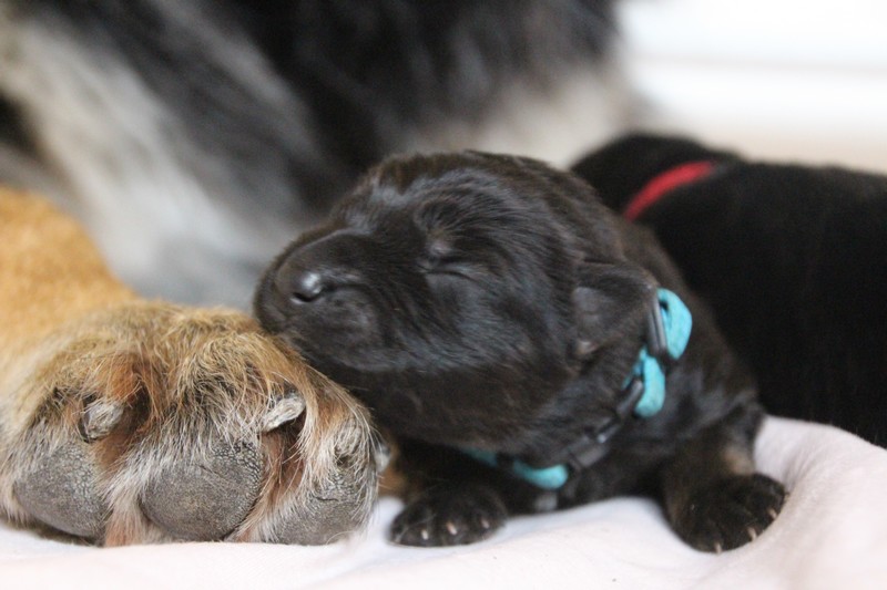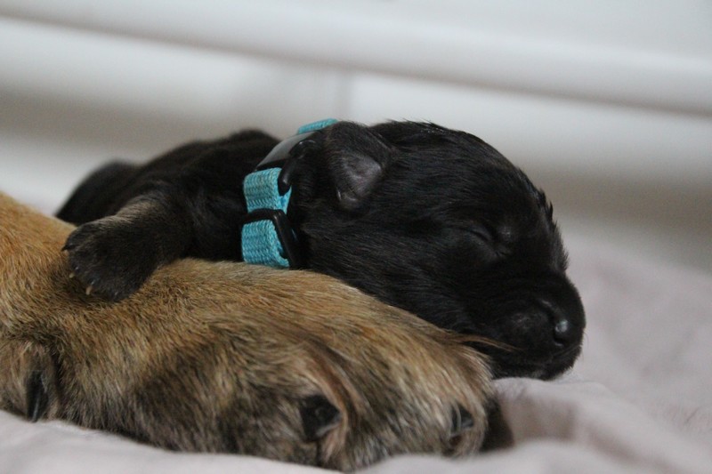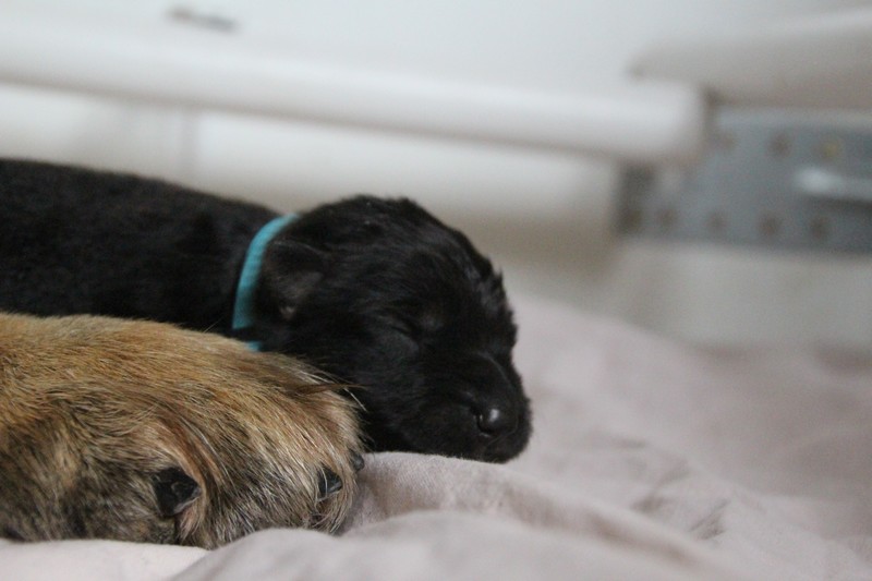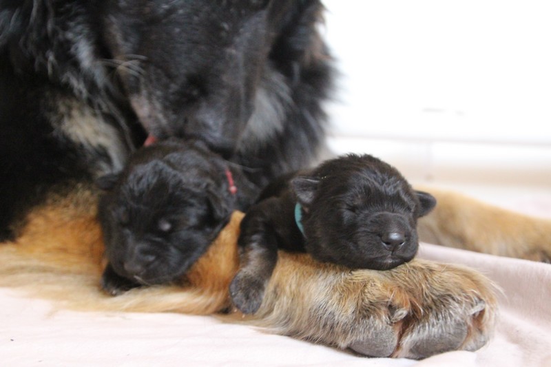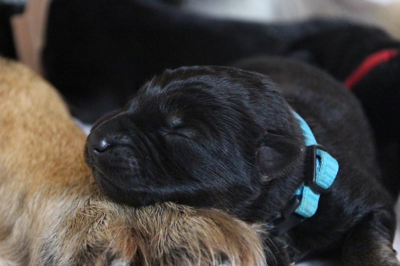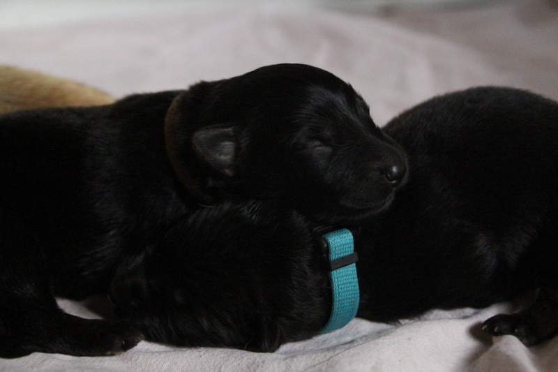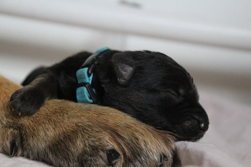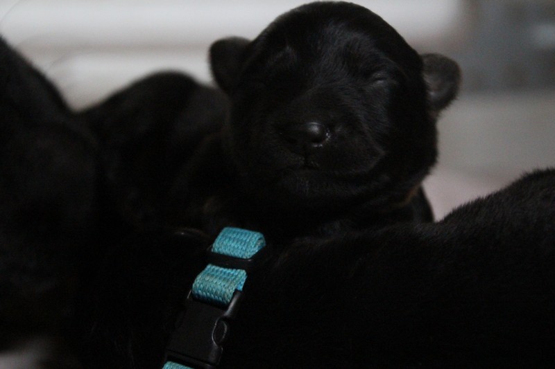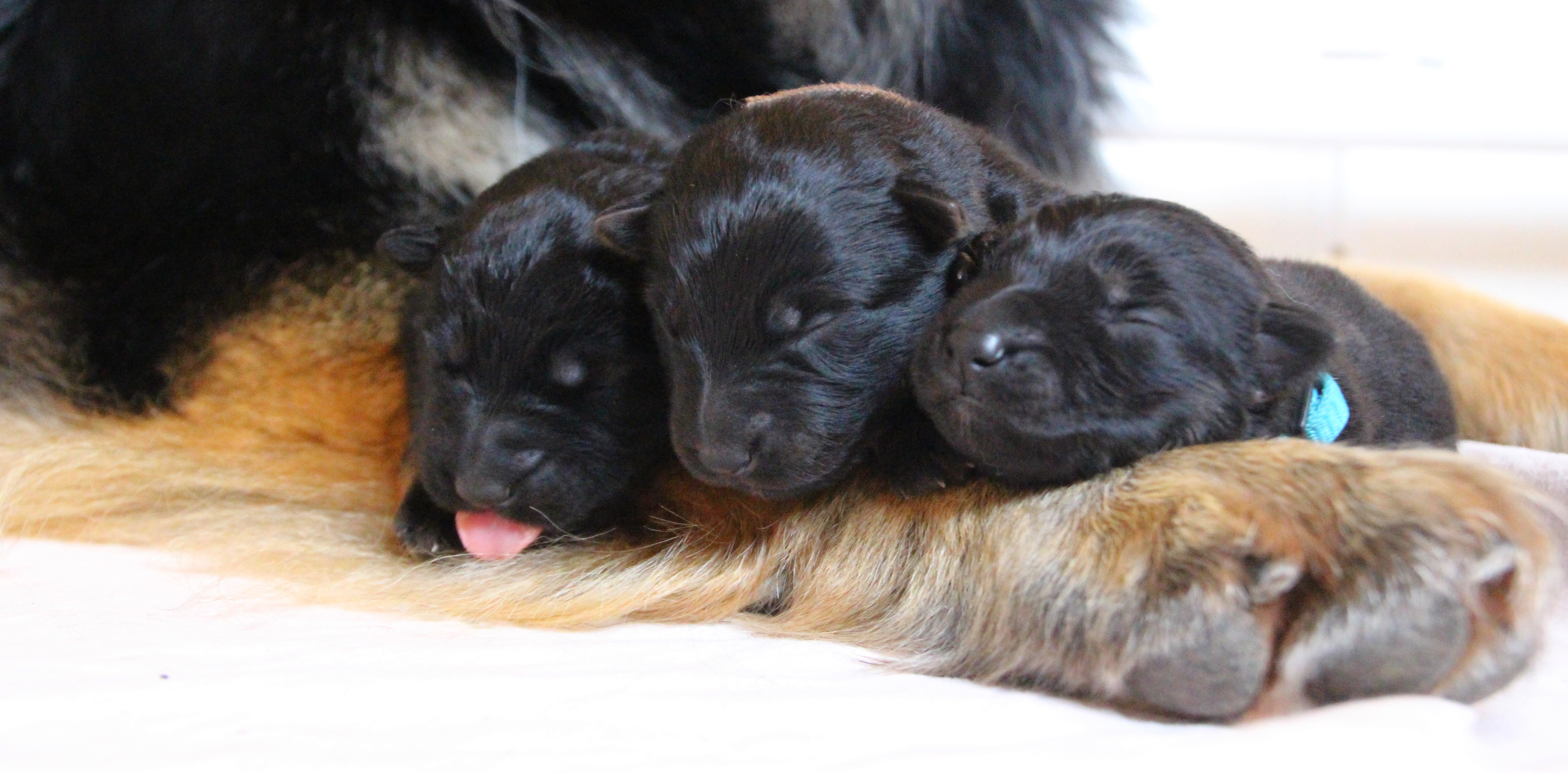 En attendant le 13 aout Thaïs a mis au monde 3 petits boules, 1 mâle fauve charbonné et deux femelle 1 noir et feu et 1 fauve charbonné.