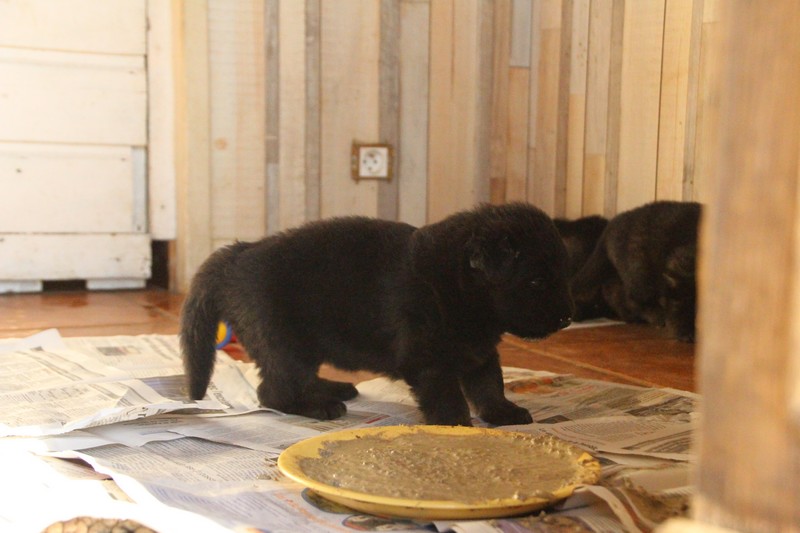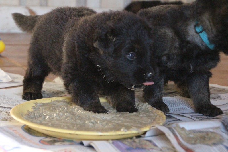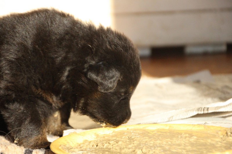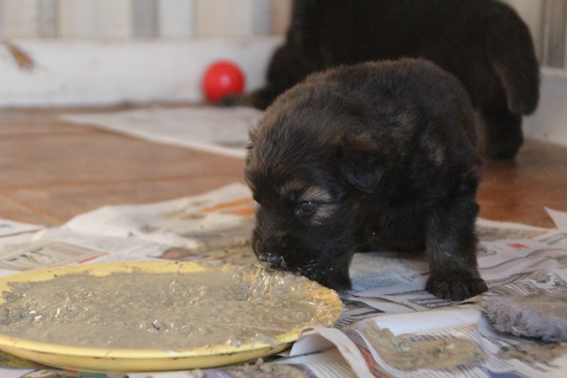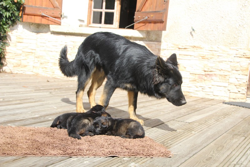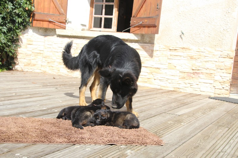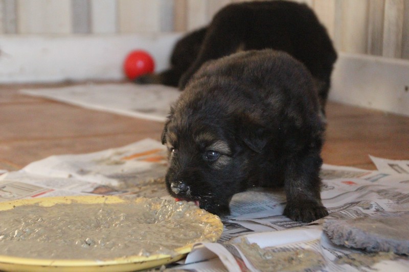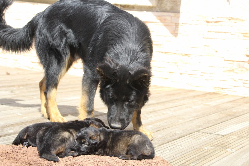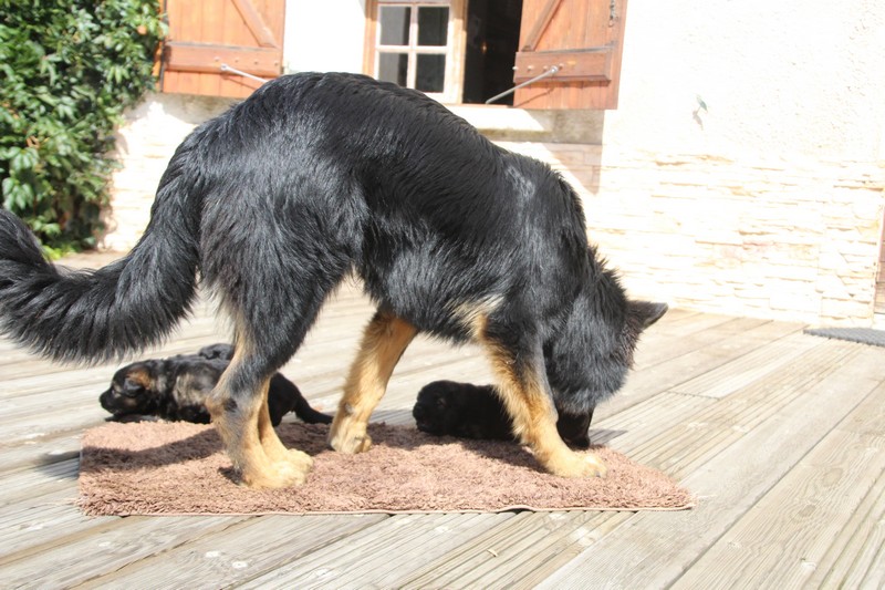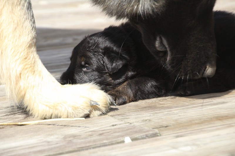 Pour les trois petits cochons, qui commences à avoir des interactions entre eux et avec nous, cette semaine ils vont découvrir la bouillie et petit a petit le restant de la meute ! tout va s’accélérer pour eux et nous allons pourvoir percevoir quelques signes de leur personnalité.