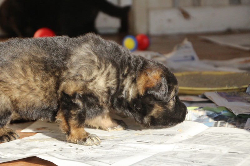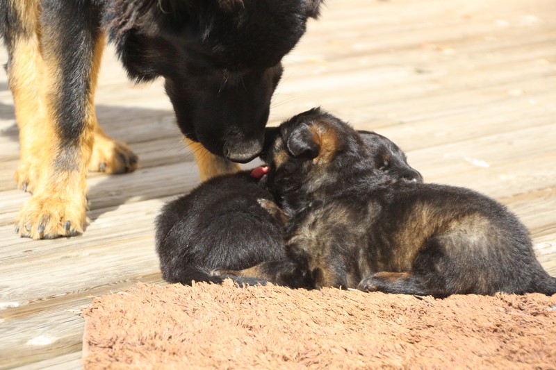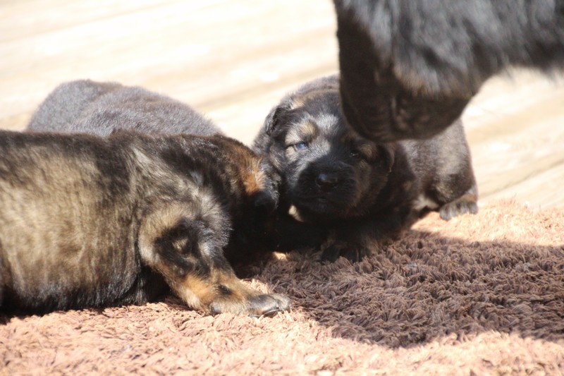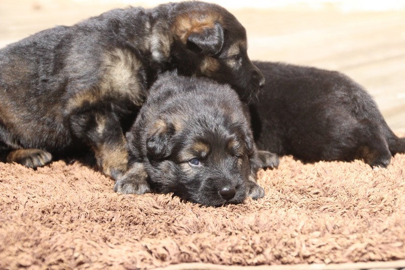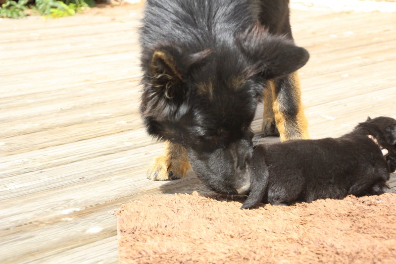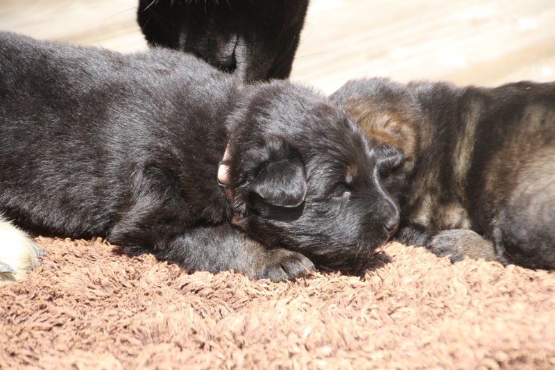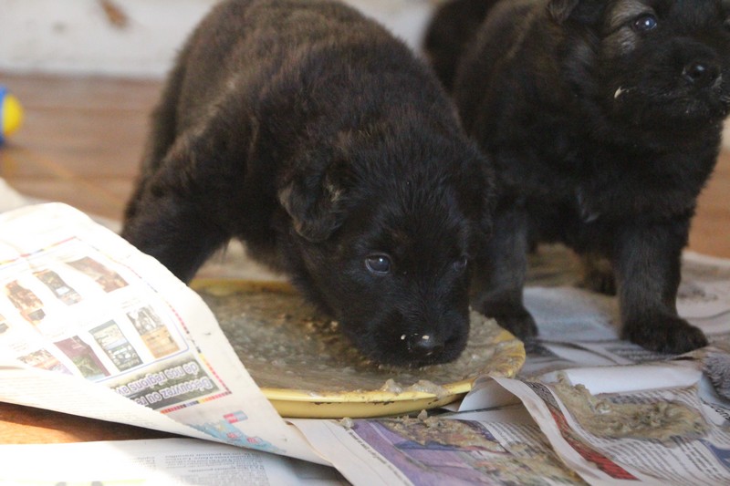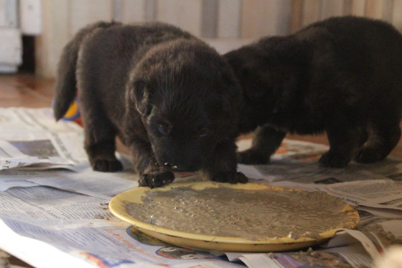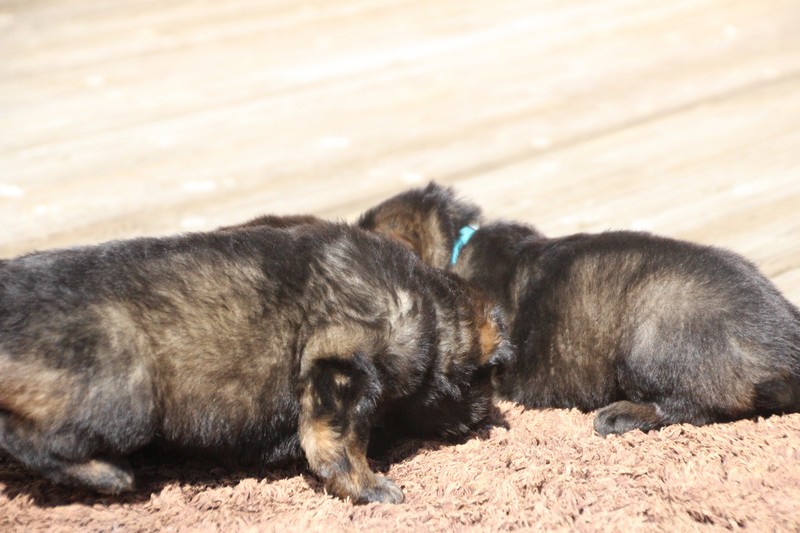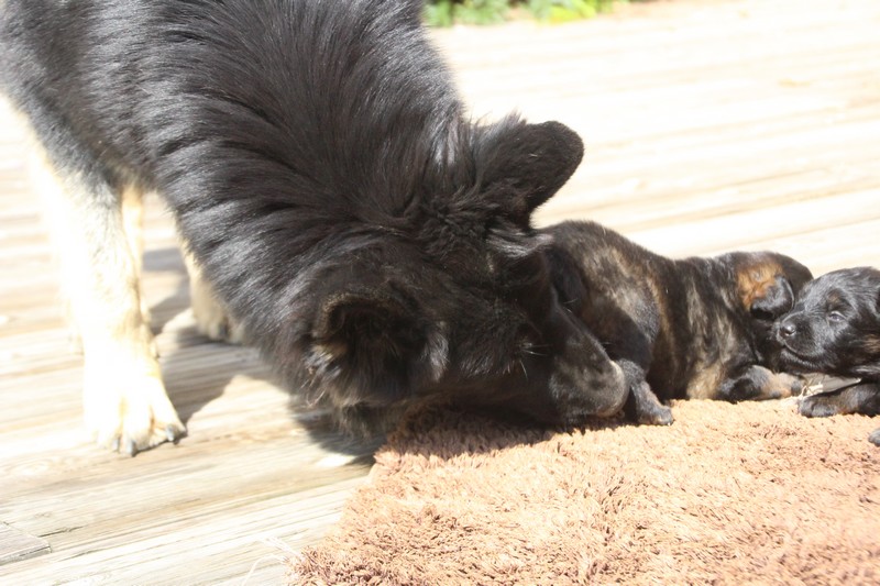 Pour les trois petits cochons, qui commences à avoir des interactions entre eux et avec nous, cette semaine ils vont découvrir la bouillie et petit a petit le restant de la meute ! tout va s’accélérer pour eux et nous allons pourvoir percevoir quelques signes de leur personnalité.