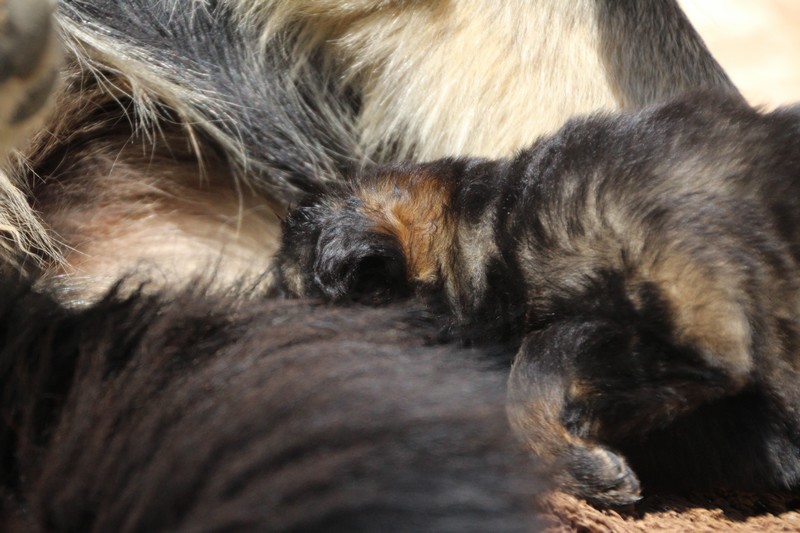 Nous avons quitté la caisse de mise bas et nous sommes installés dans la crèche, une façon de commencer à découvrir peu à peu les espaces plus grands, et surtout nous avons gouté la bouillie que nous avons adopté à l’unanimité.