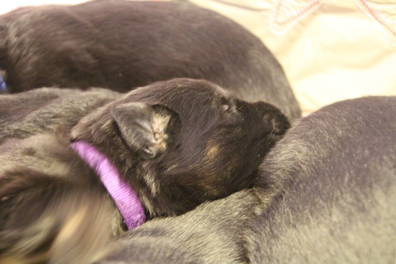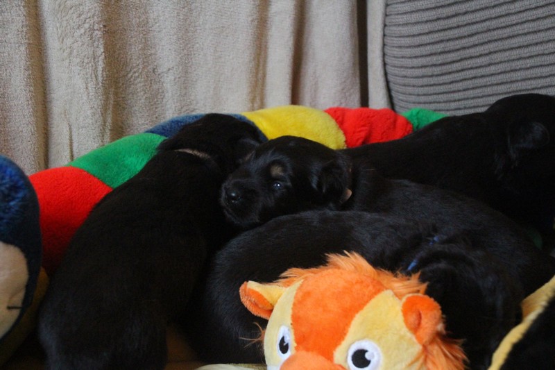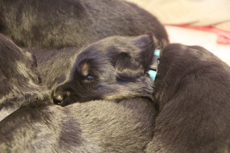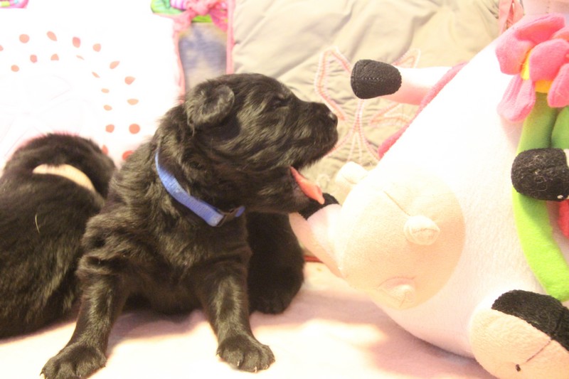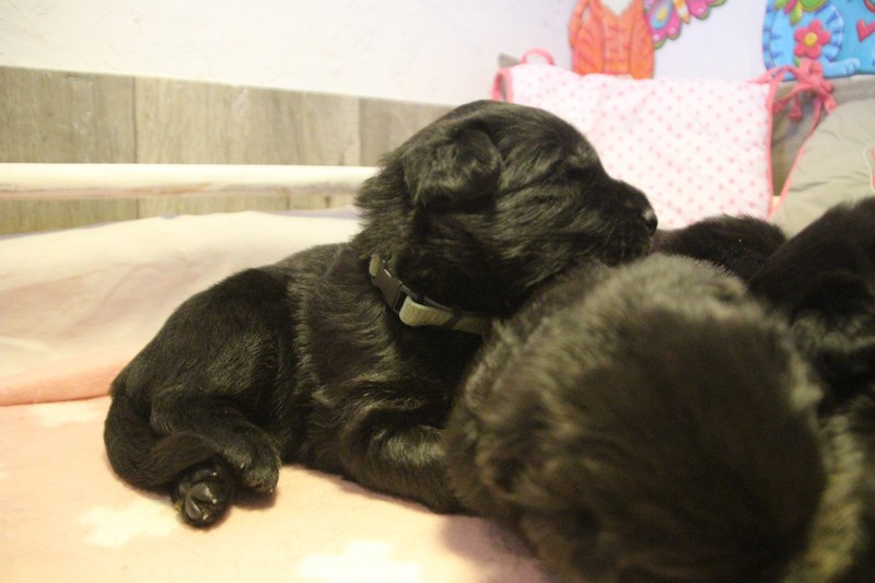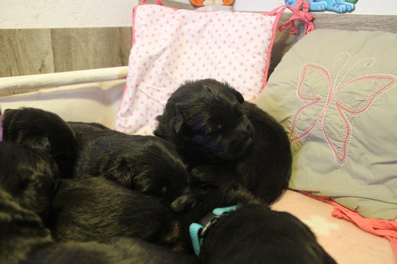 Autrement, nous sommes des petits chiots dynamiques, très à l’écoute du moindre bruit et prêts à y réagir. Nous commençons nous aussi à découvrir d’autre pièces de la maison